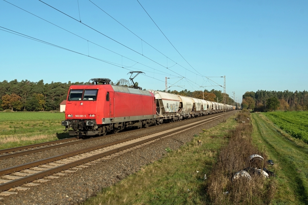 Dto. 145 091-5 am 10.10.2019 dann bei Ahlten "im richtigen Licht" als Tfzf