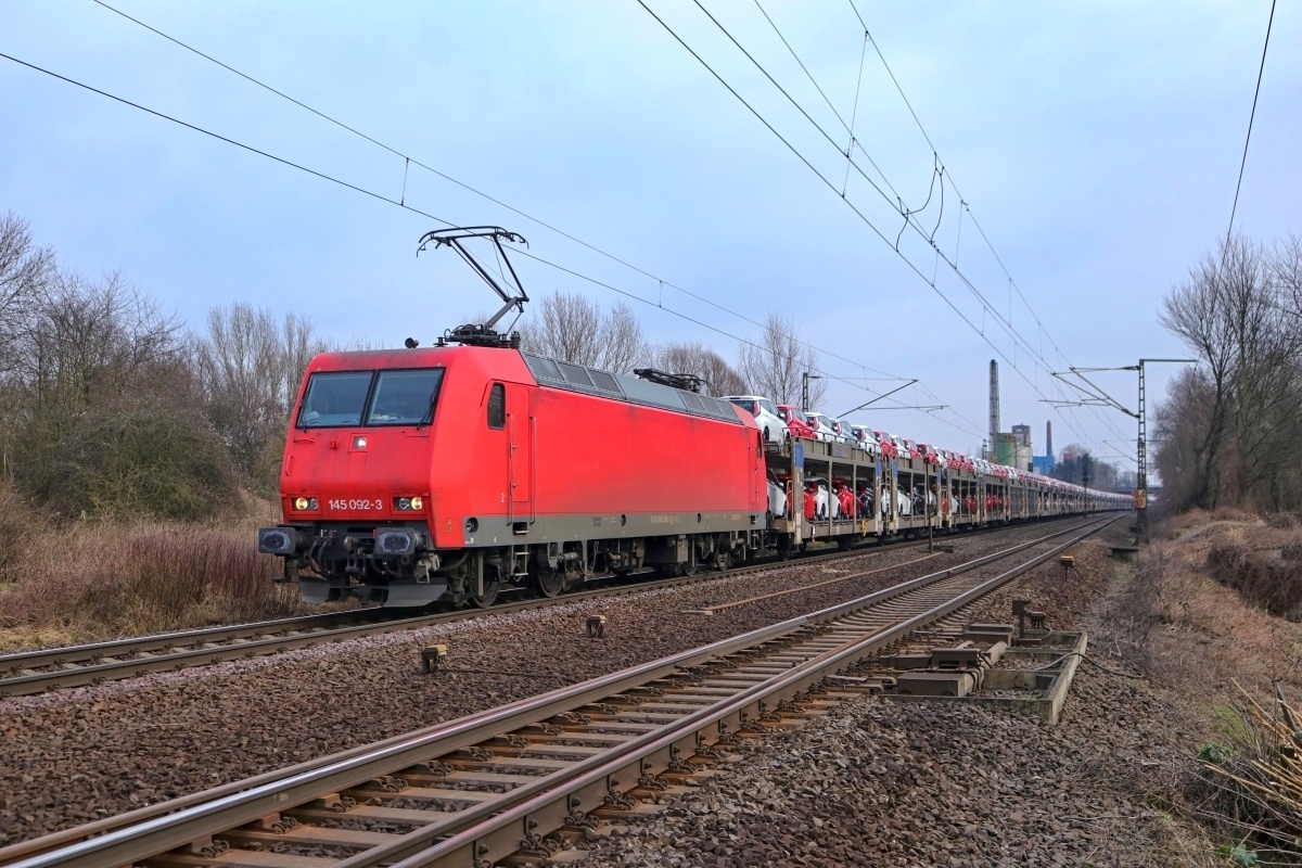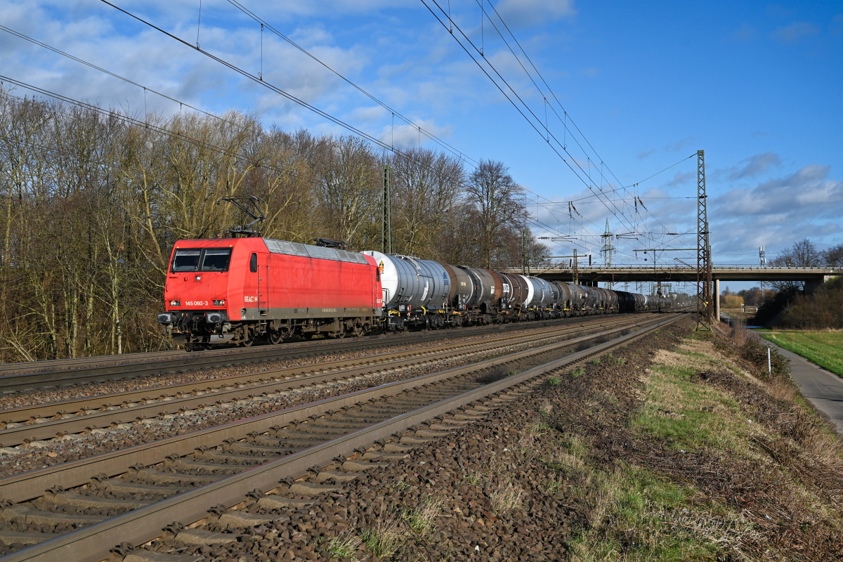 Dto. 145 092-3. Hier passierte die Lok am 21.03.2018 Vennebeck (HVBK) auf