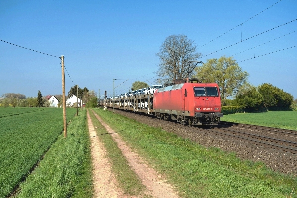 Dto. 145 092-3 am 23.04.2022 bei Stadthagen (HSHG) mit einem Voll-BLG