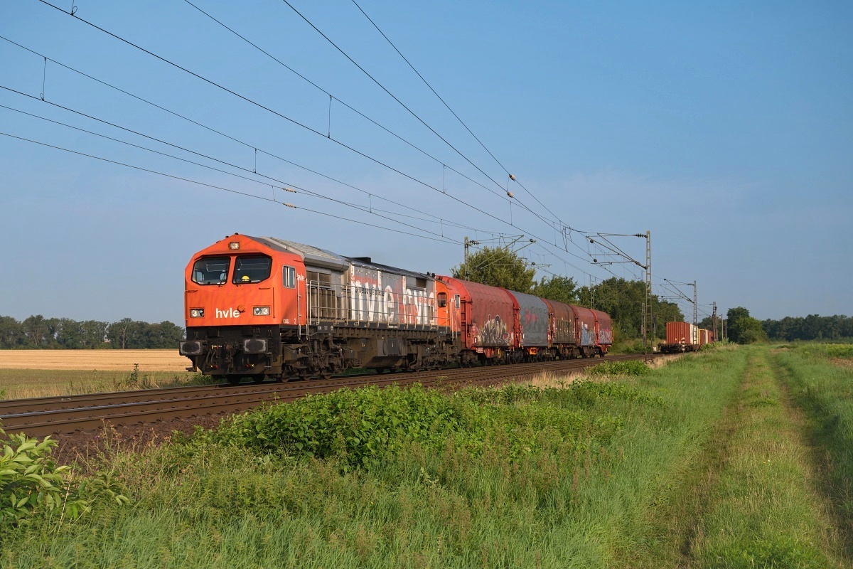 Dto. 250 008-0 am 20.08.2024 im Morgenlicht bei Woltorf (HWOT) mit einigen