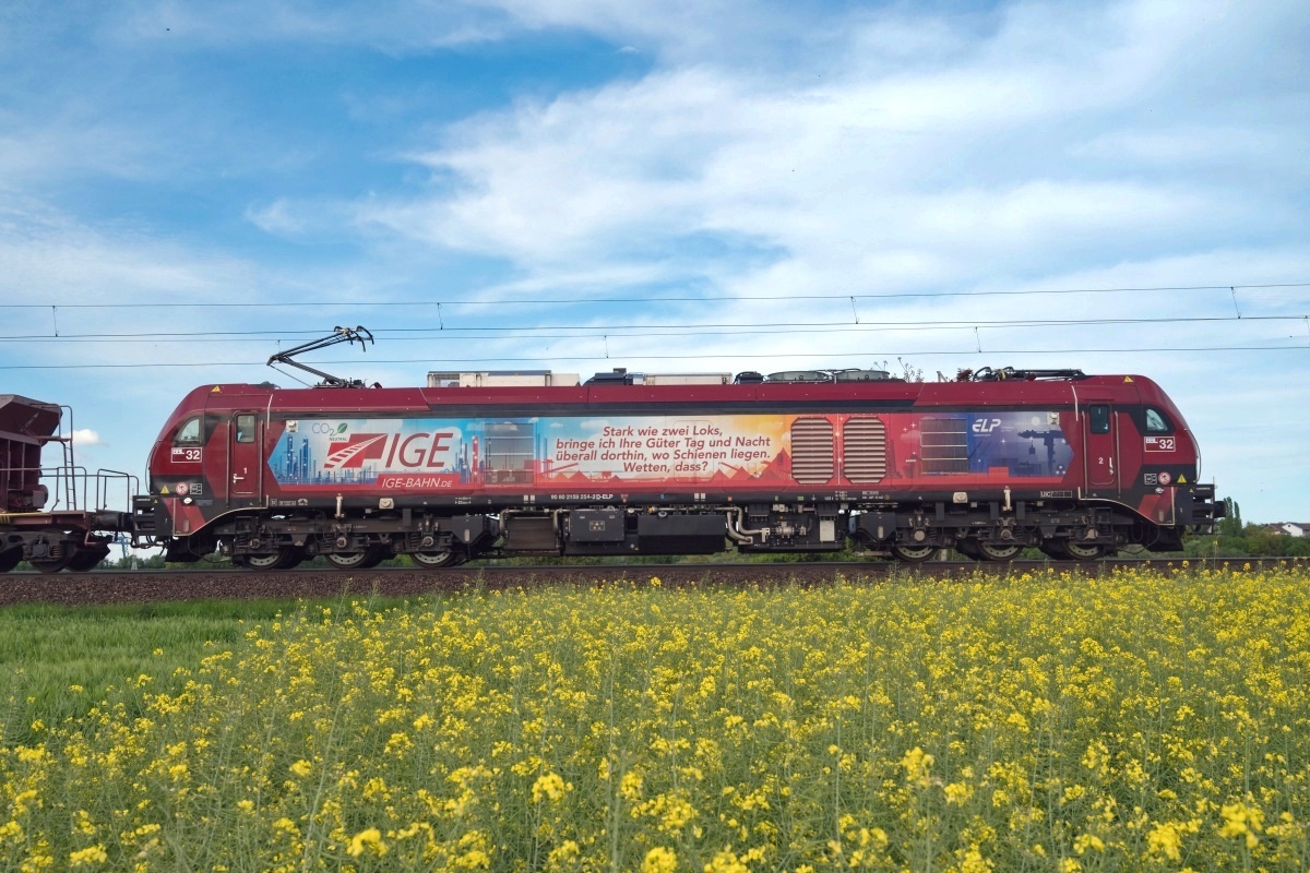 Dto. 482 047-8 mit aktuellem Werbedesign "40 Jahre IGE