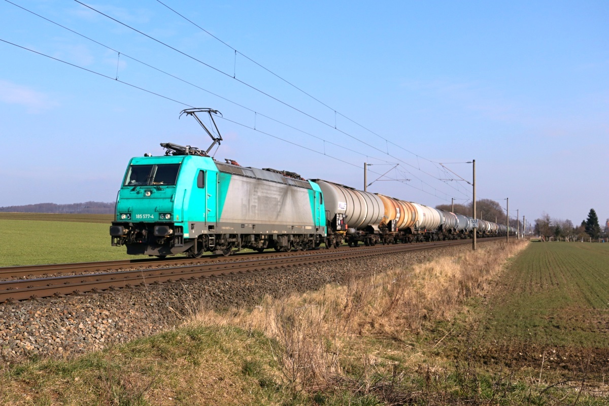 Dto. 185 577-4 am 21.02.2018 bei Melle. Hier war die Lok mit einem