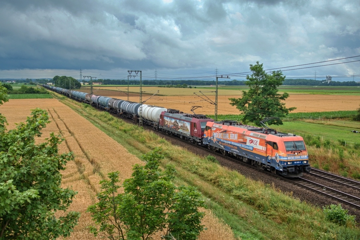 185 681-4 mit der aktuellen IGE Werbung. Die Lok passierte hier am 26.09.2018