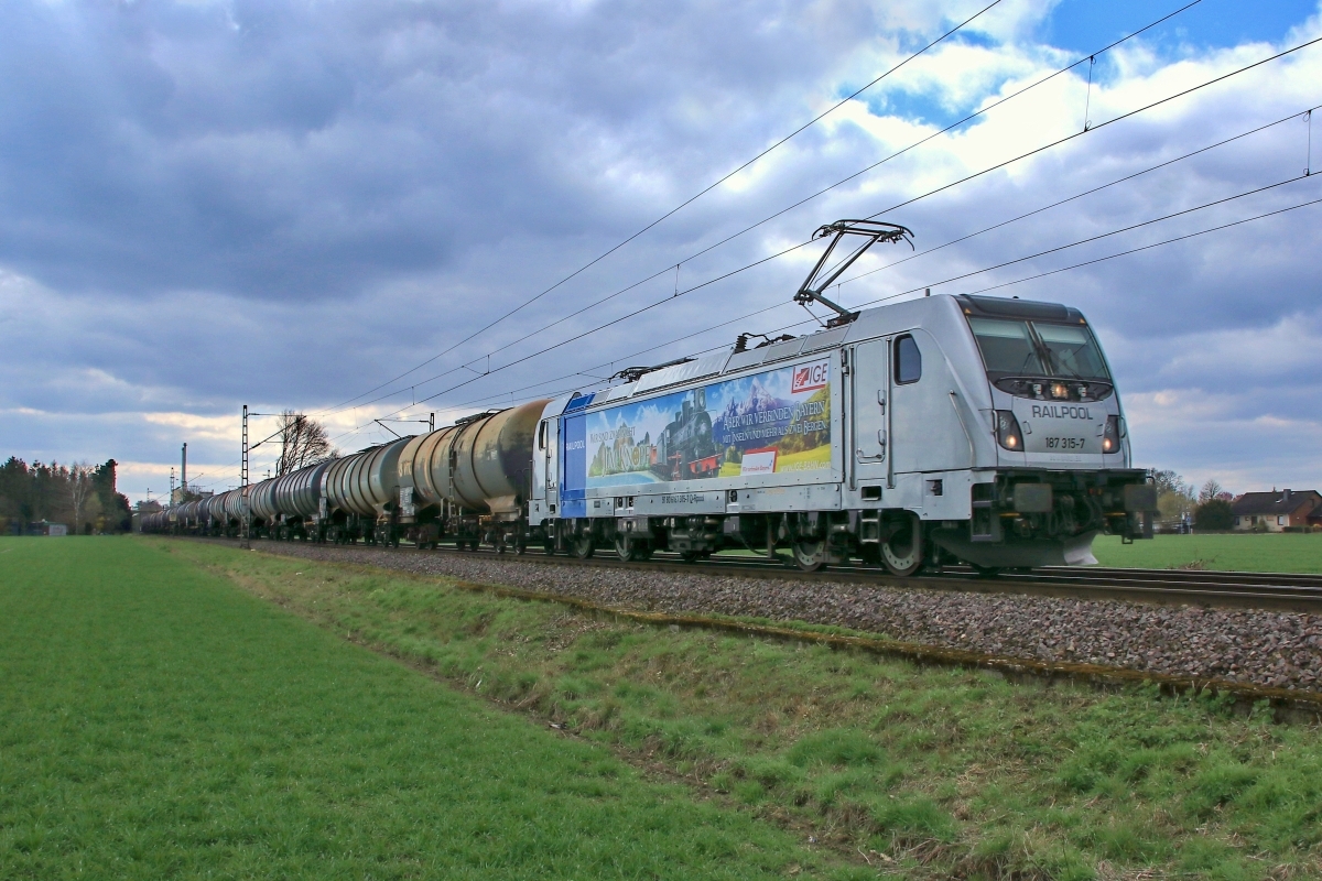 schon wieder ohne Werbefläche. Hier war die Lok mit einem Kesselwagenzug