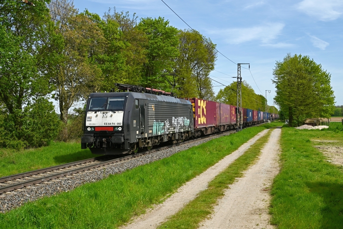Dto. 189 992-1 am 04.05.2023 bei Boisheim (KBOI) mit einem CT-Zug Rtg. Venlo