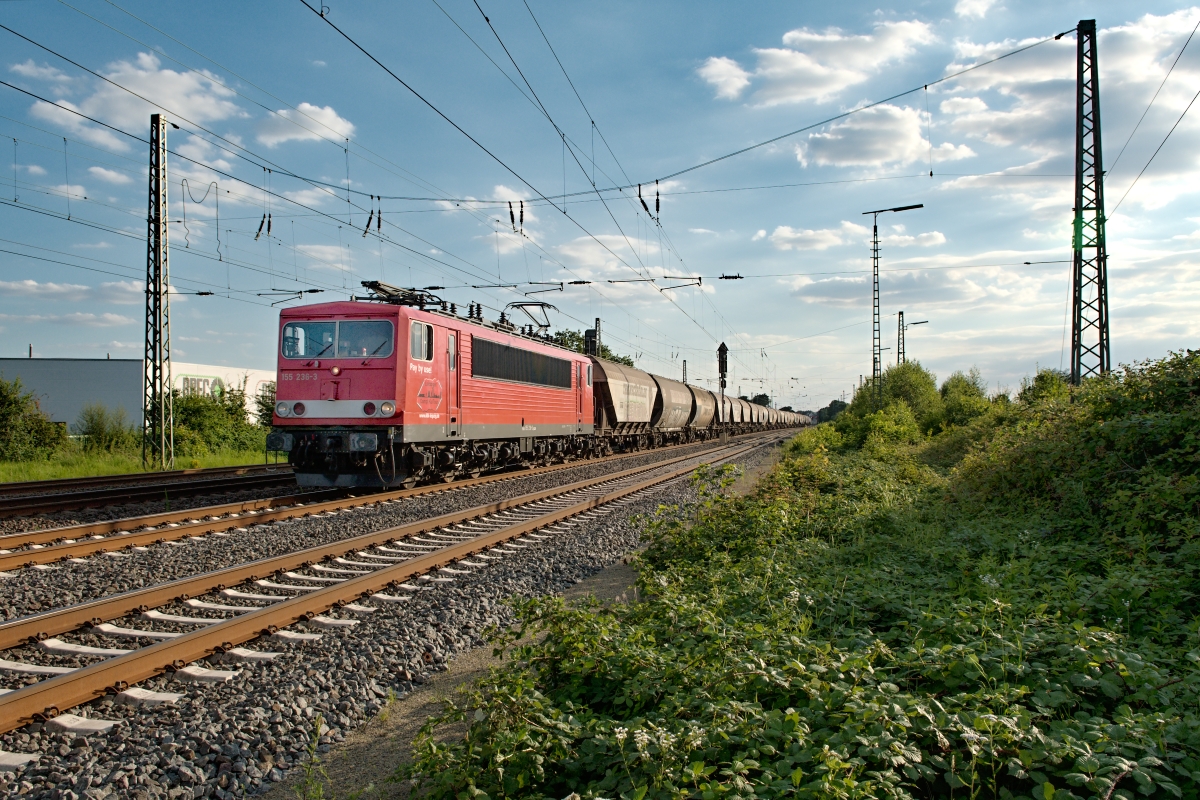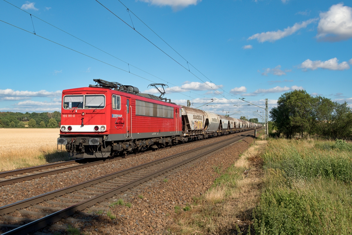 Dto. 155 236-3 am 23.07.2020 bei Vennebeck mit einem Getreide-DGS von Hamm (Westf)