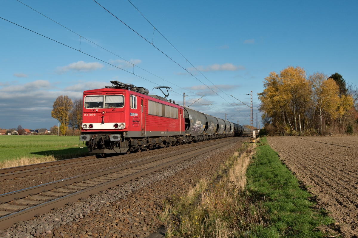 Dto. 155 191-0 am 18.11.2020 bei Bückeburg (HBKB) Echtorf mit dem DGS 98491