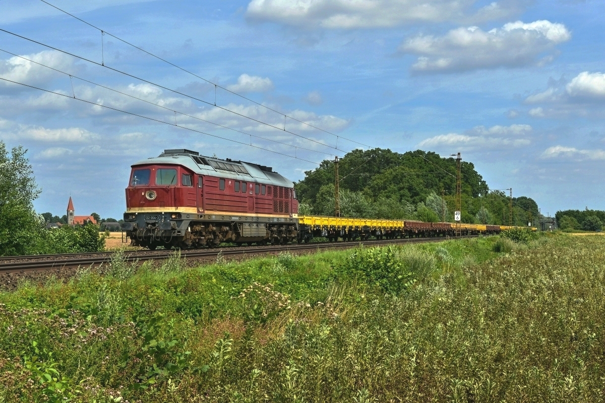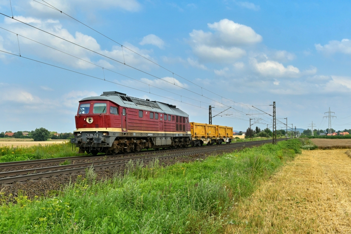 Dto. 132 004-3 am 22.07.2021 bei Bückeburg (HBKB) mit 2x Aushubwagen als DGS