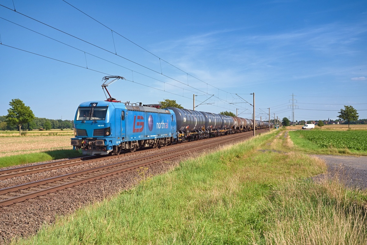 Ahlten bei leichtem Nieselregen mit einem Wascosa Kesselwagenzug Rtg. Osten...
