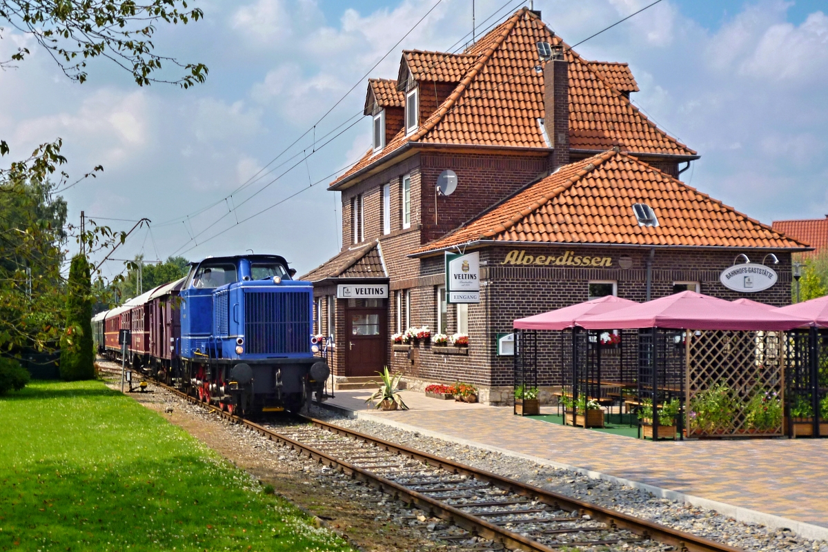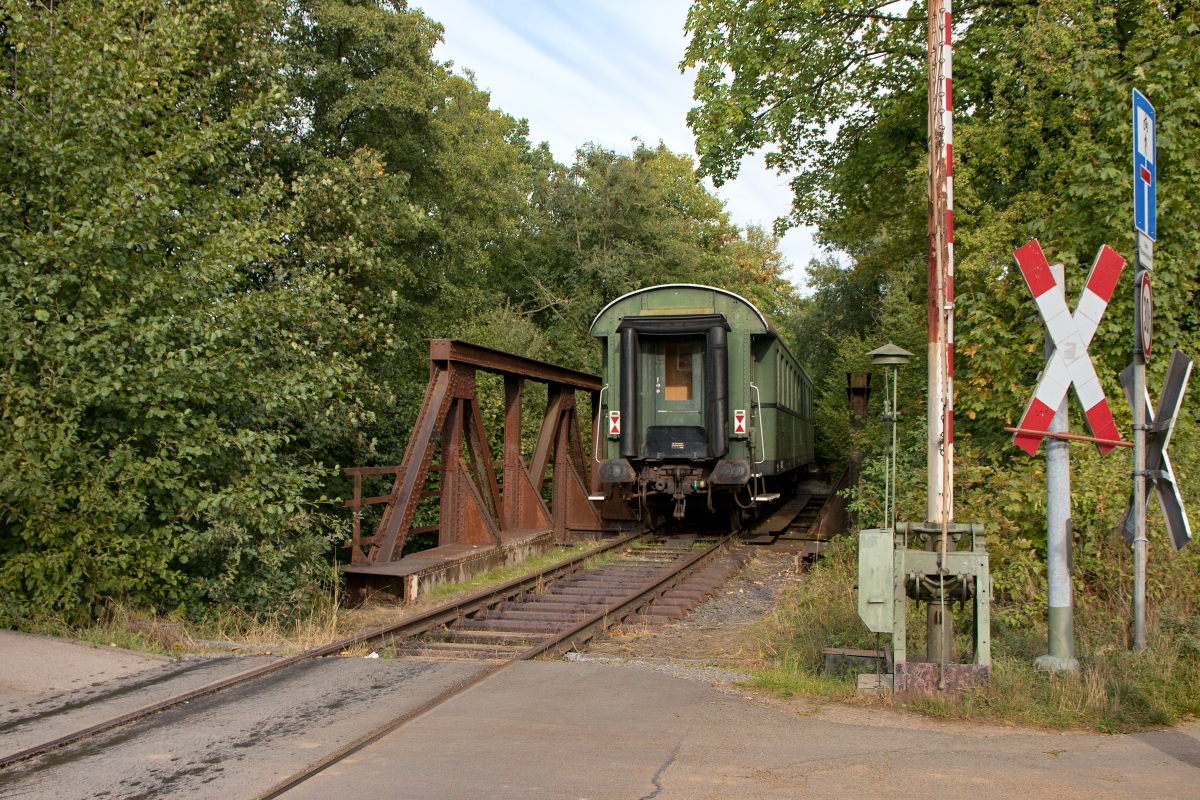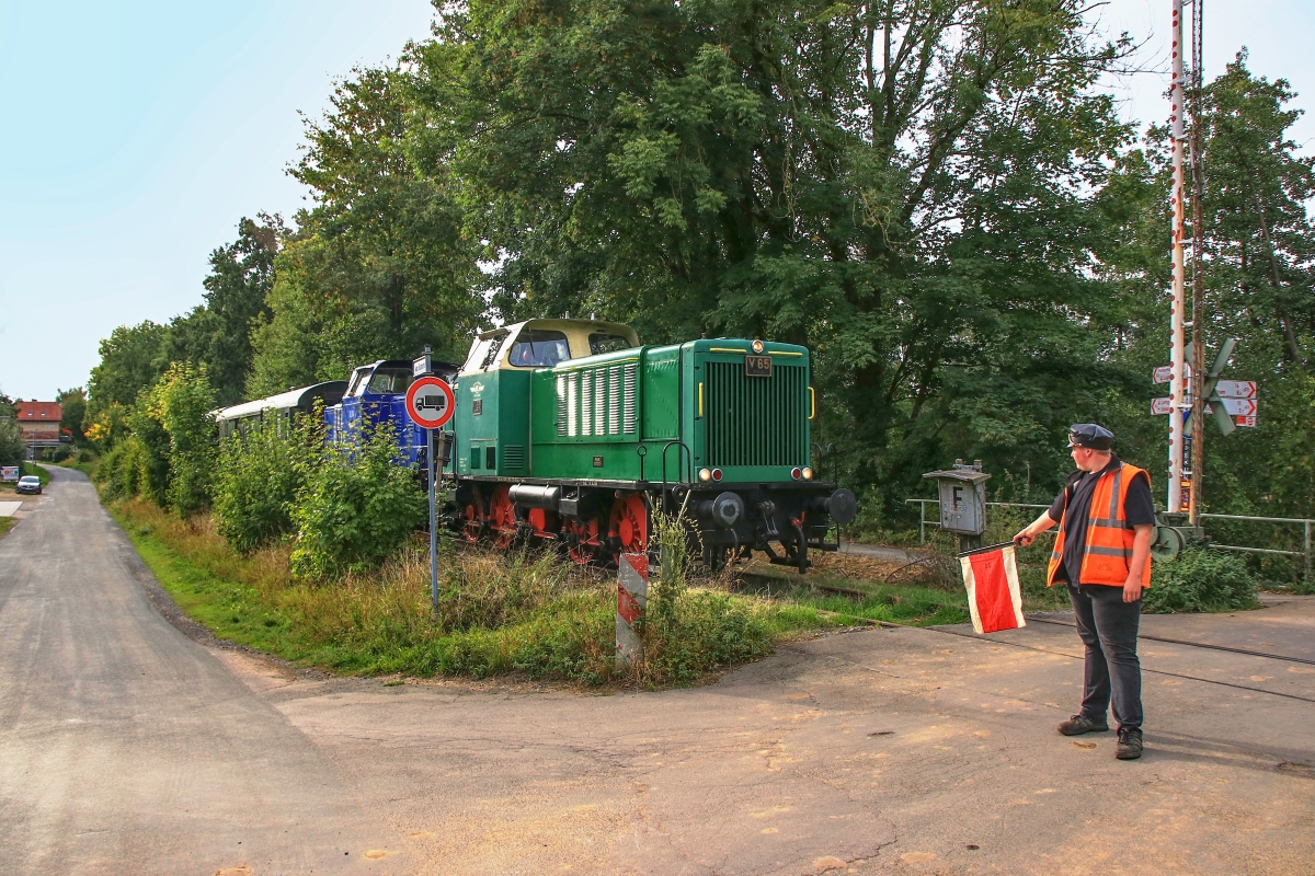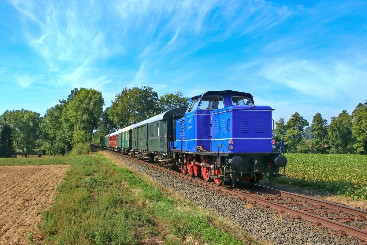 Lok 22 der Extertalbahn fuhr hier am 27.07.2014 gerade mit einem Sonderzug
