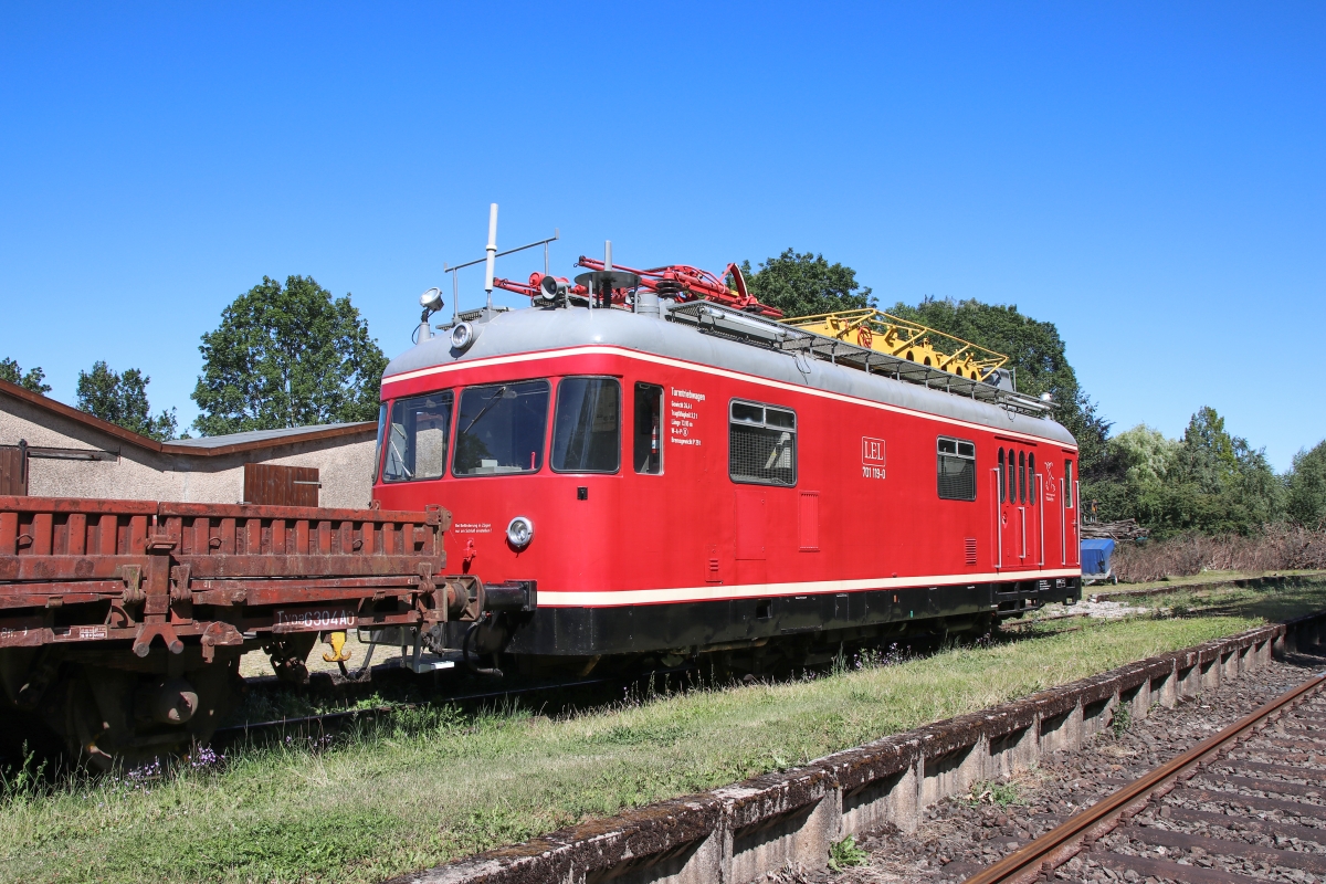 LEL Turmtriebwagen 701 119-0 stand hier am 02.08.2018 in Farmbeck auf dem