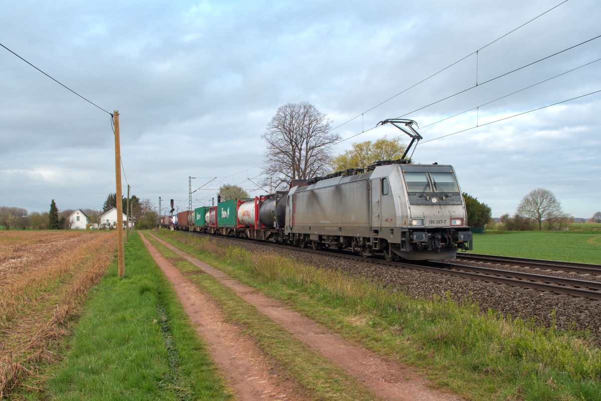 Dto. 186 387-7 am Mi 14.04.2021 bei Stadthagen (HSHG) Probsthagen mit dem