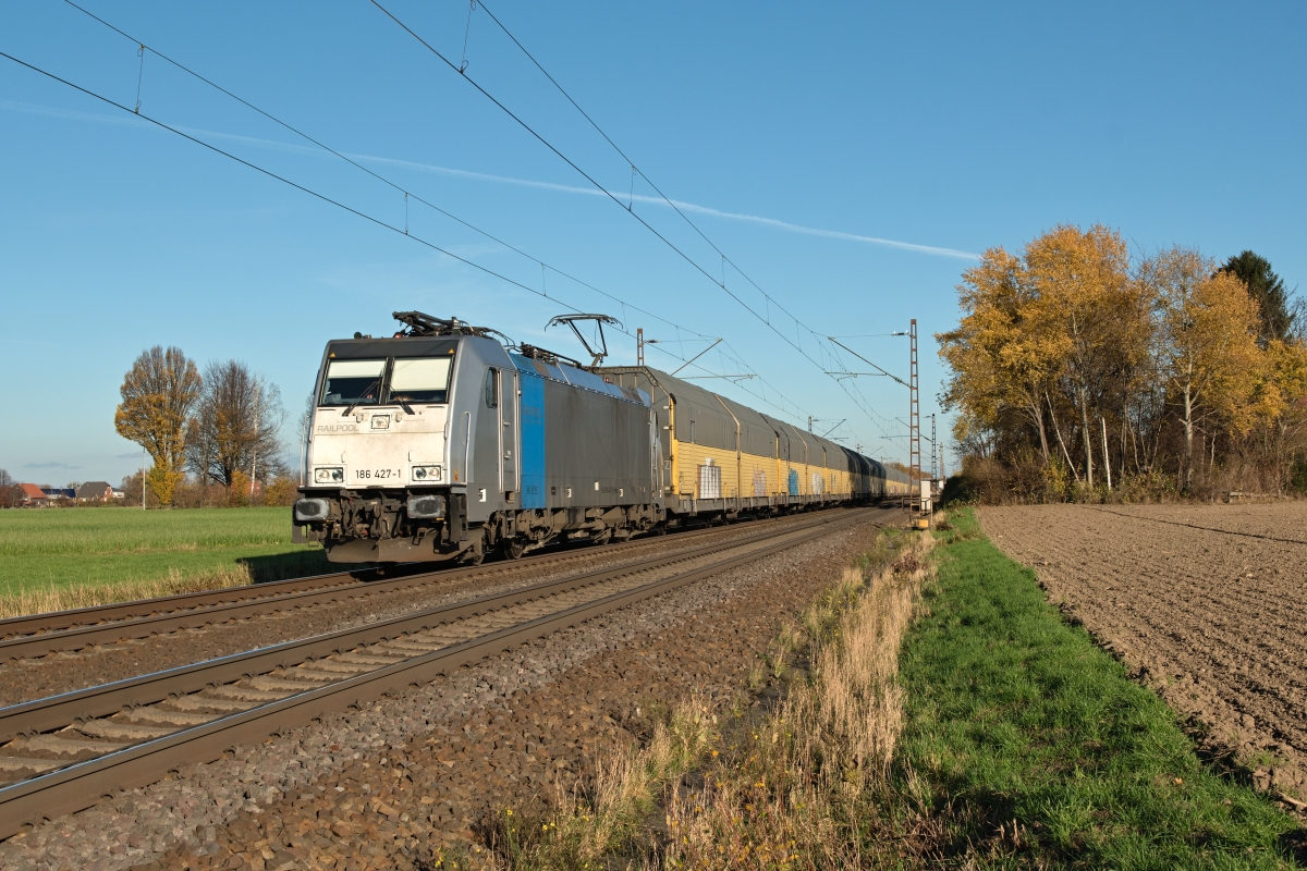 Dto. 186 432-1 am 26.10.2022 im letzten brauchbaren Tageslicht bei Bückeburg (HBKB)