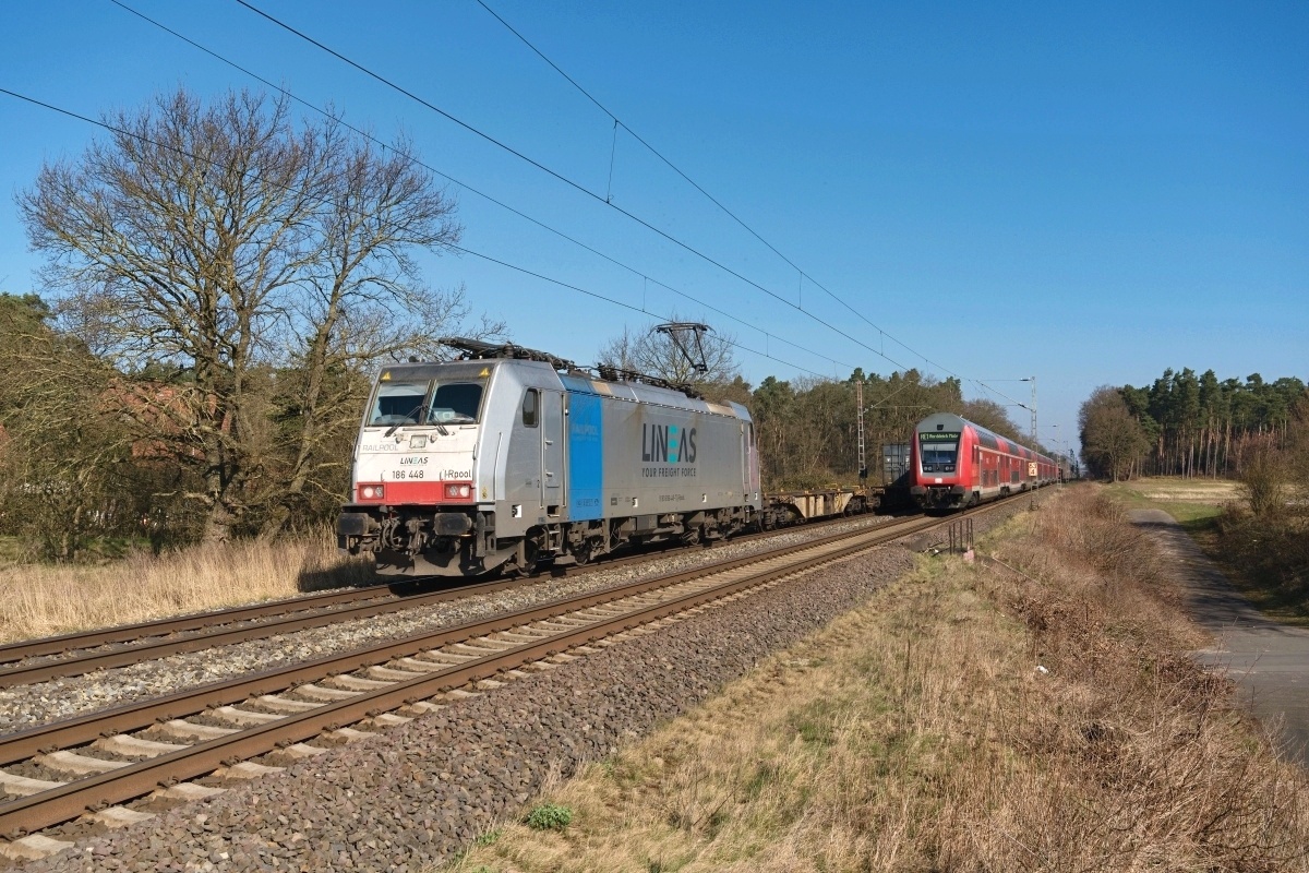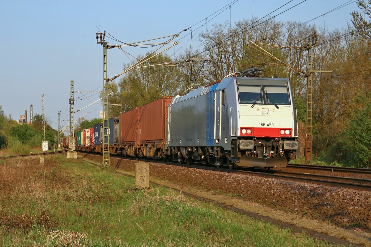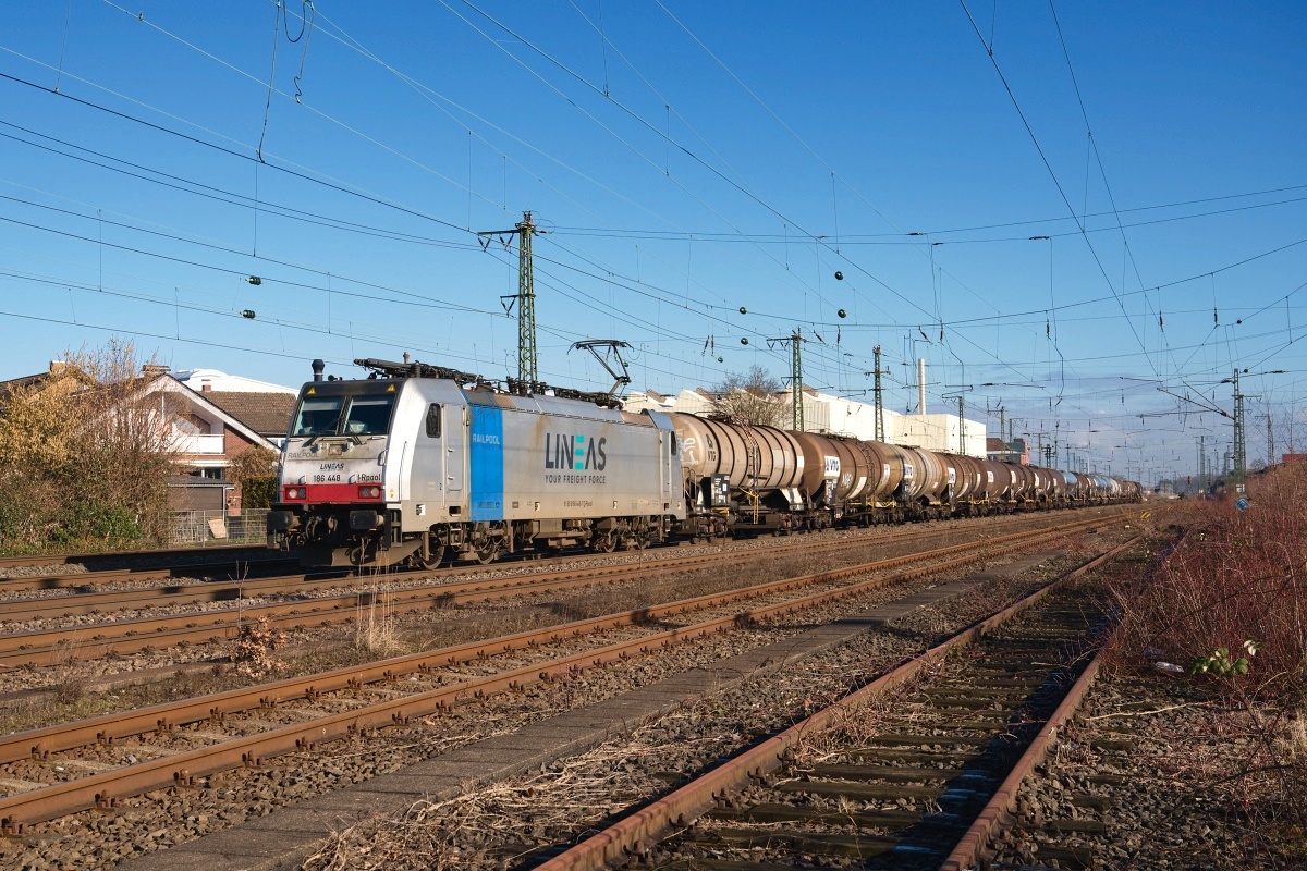 Dto. 186 449-5 am 17.03.2023 im aktuellen Lineas Design mit dem Nievenheimer