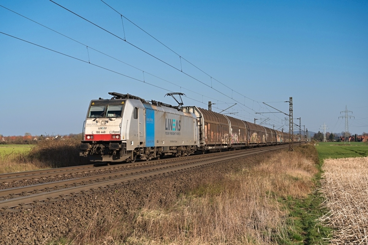 Dto. 186 448-7 am 24.03.2022 als Umleiter bei Bückeburg (HBKB) mit dem