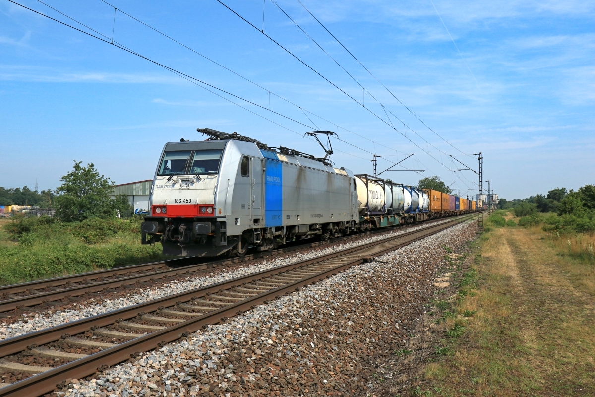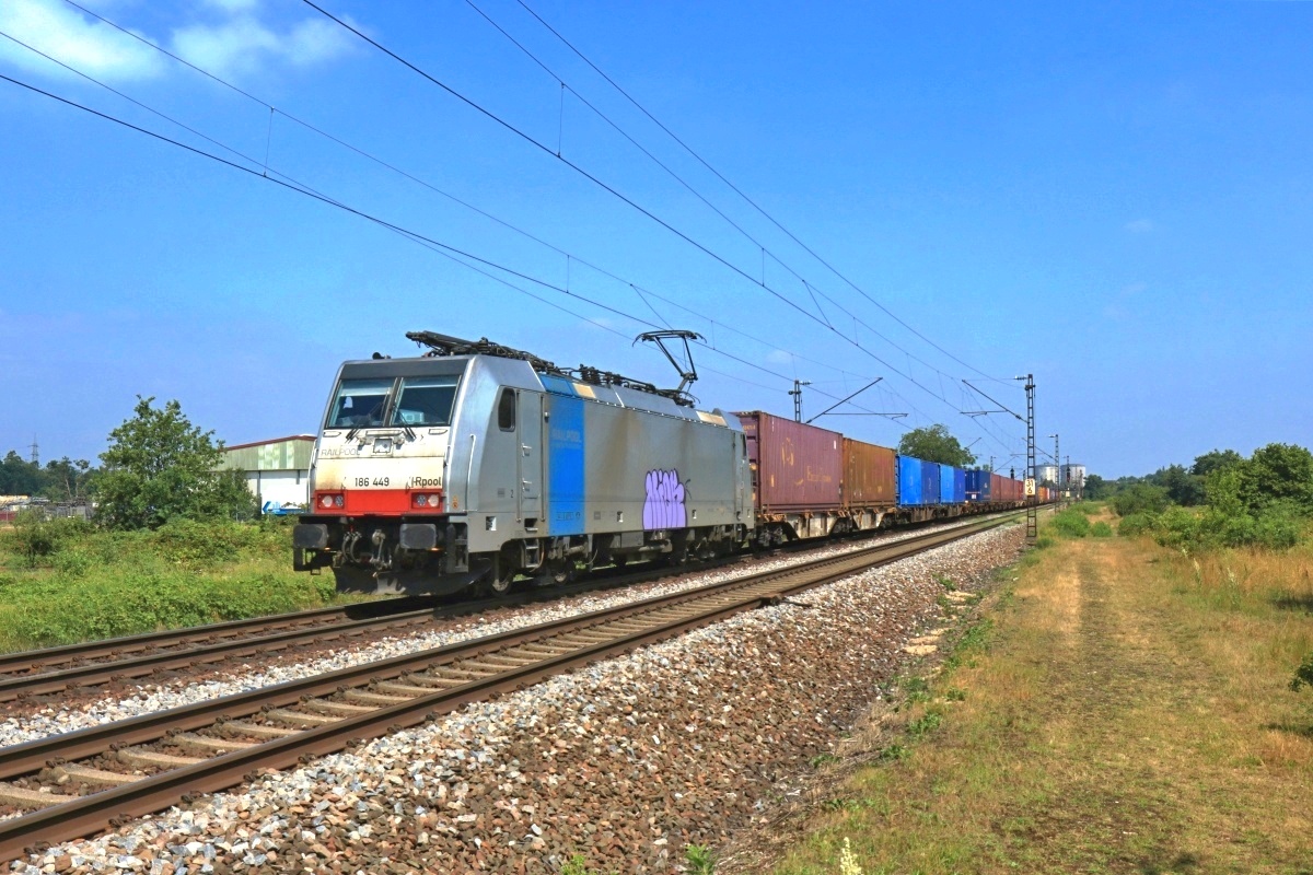 Dto. 186 449-5 am 08.07.2021 bei Klein-Gerau (FKGE) mit dem DGS 43982 von