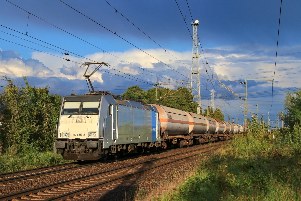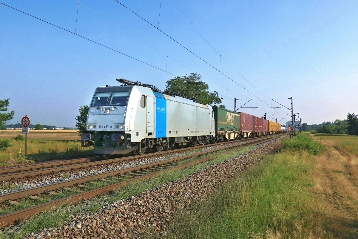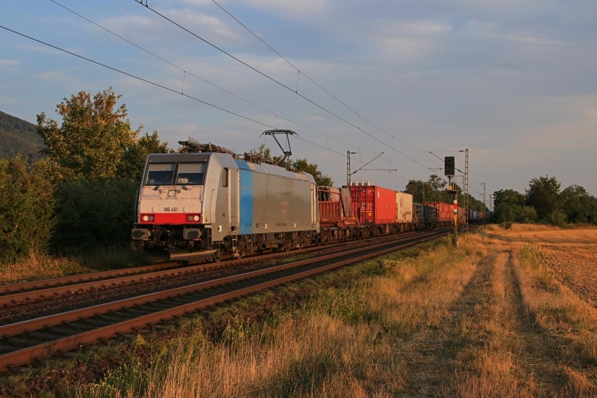 Dto. 186 508-8 am 18.07.2023 im Abendlicht. Hier passierte die Lok den