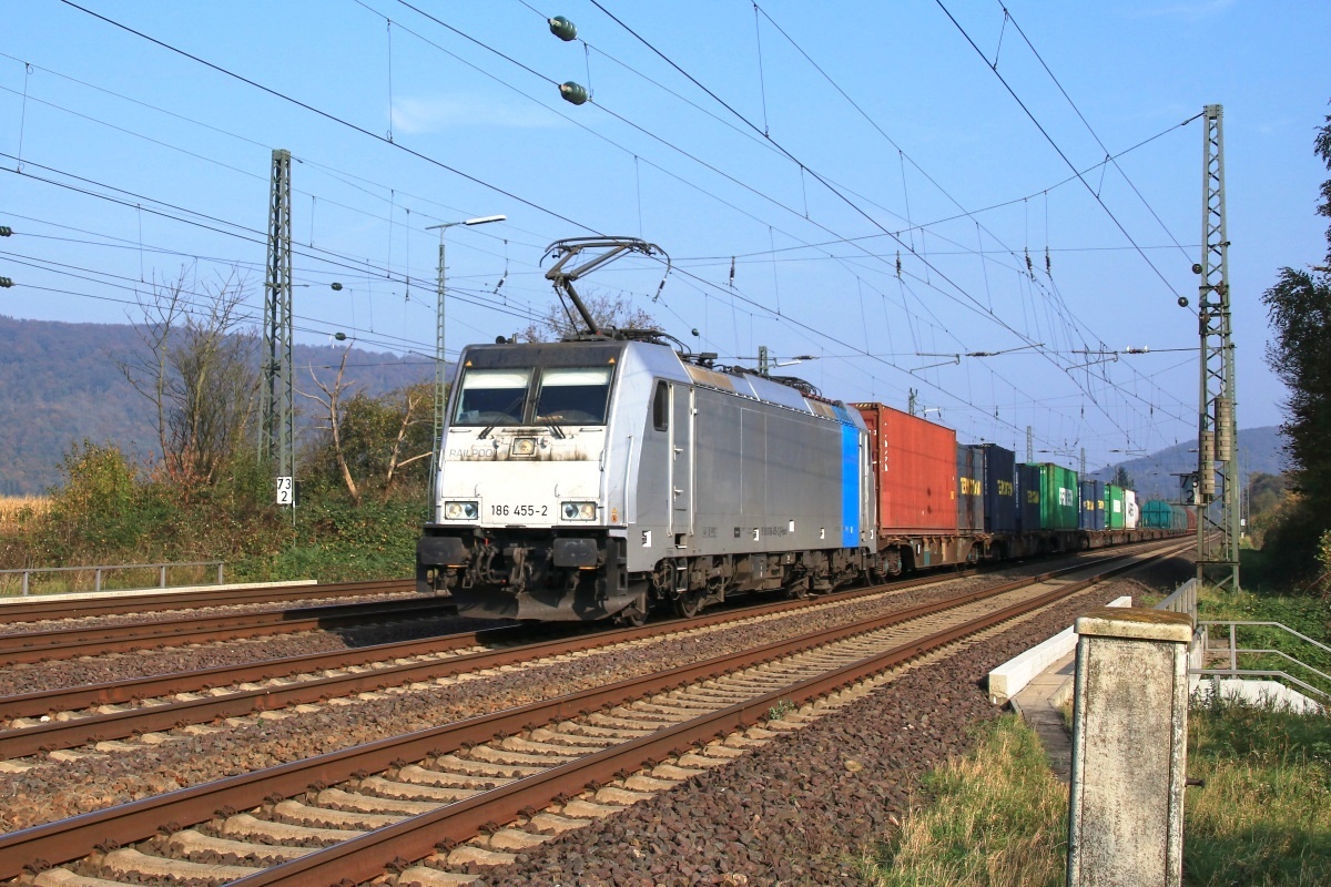 Lineas 186 510-4 mit ihrem Zug wurde auf Gleis 1 "zwischengeparkt"...