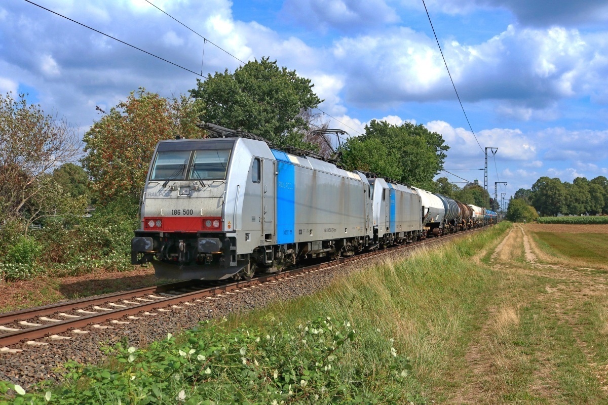 Dto. 186 508-8 am 07.08.2021 bei Lindhorst (HLH). Die Lok wurde