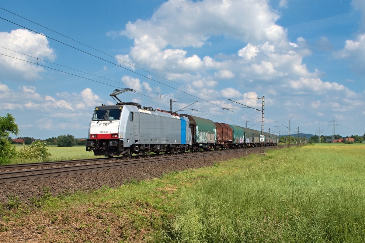 186 510-4 (NVR: 91 80 6186 510-4 D-Rpool) war hier am 11.06.2021 bei Bückeburg mit dem DGS 52633 von