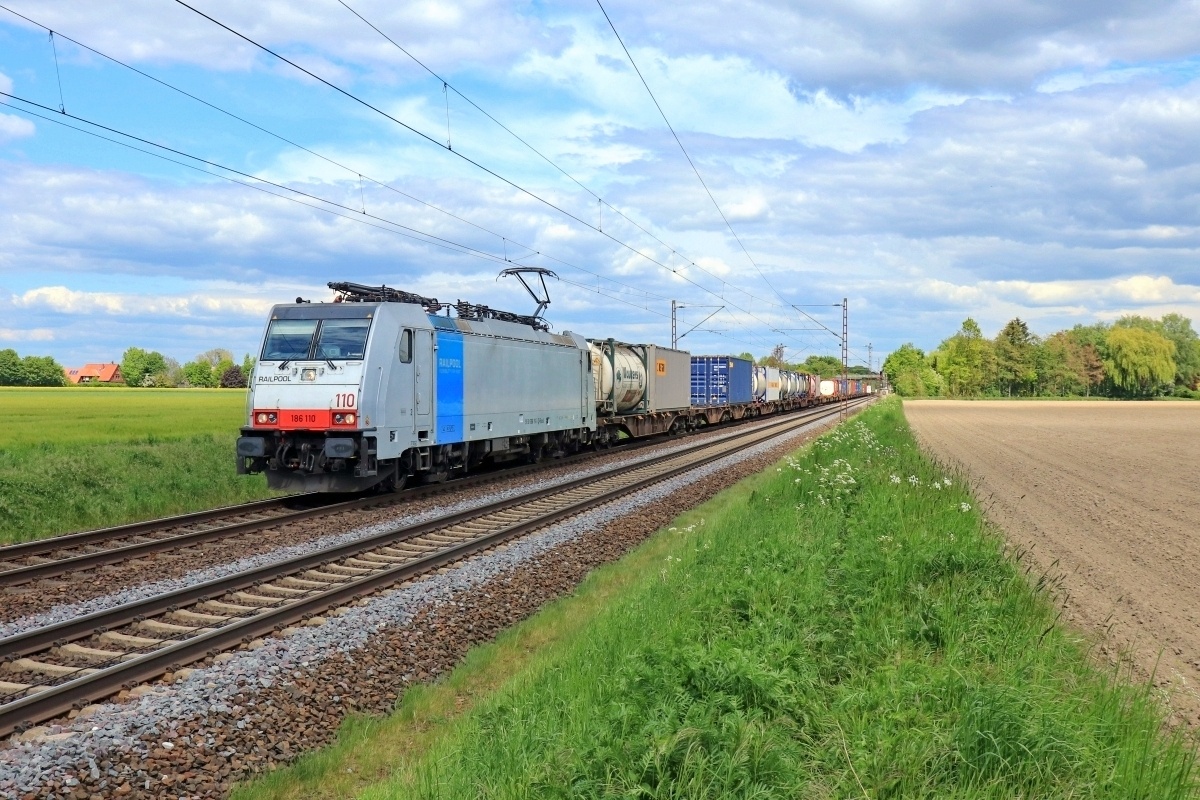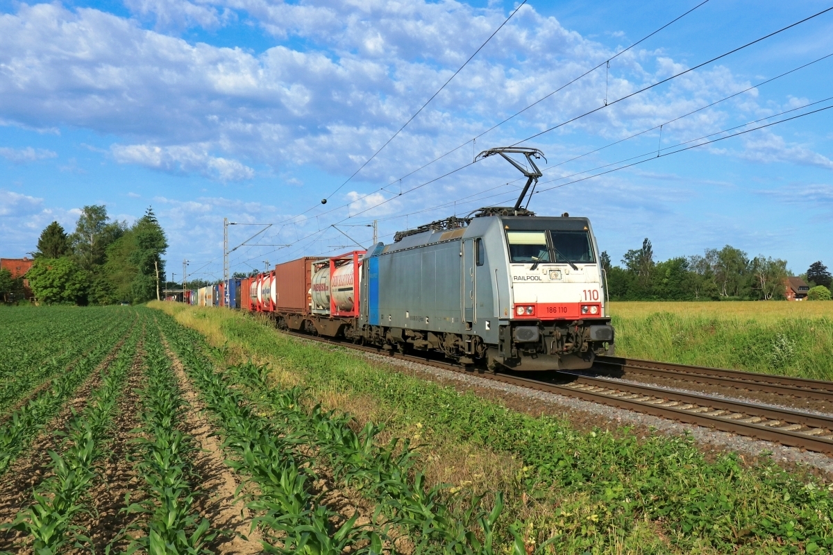 Dto. 186 110-3 am 14.06.2019. Hier war die Lok bei Bückeburg (HBKB)