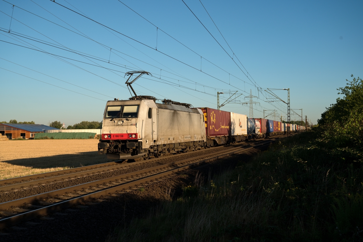 Dto. 186 138-4 am 11.08.2022 kurz nach Sonnenaufgang bei Bückeburg