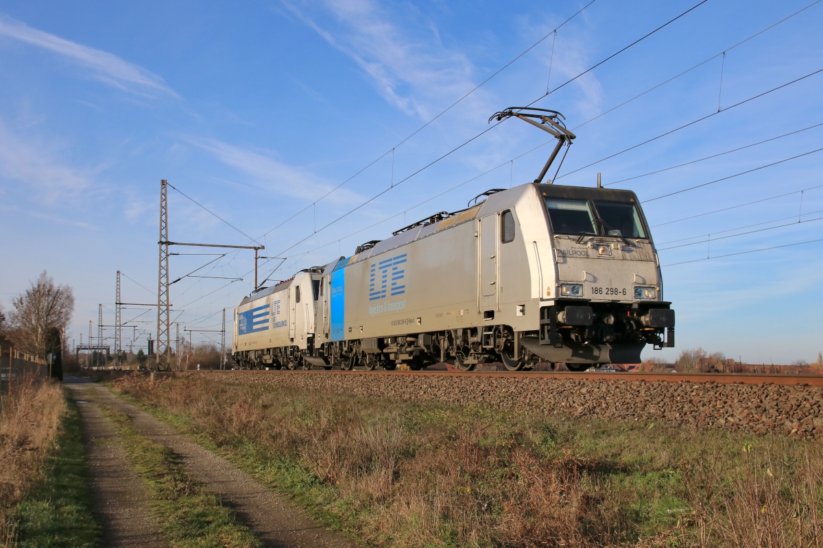 Dto. 186 298-6 am 05.12.2018 mit Wagenlok 286 940-2 als Tfzf bei