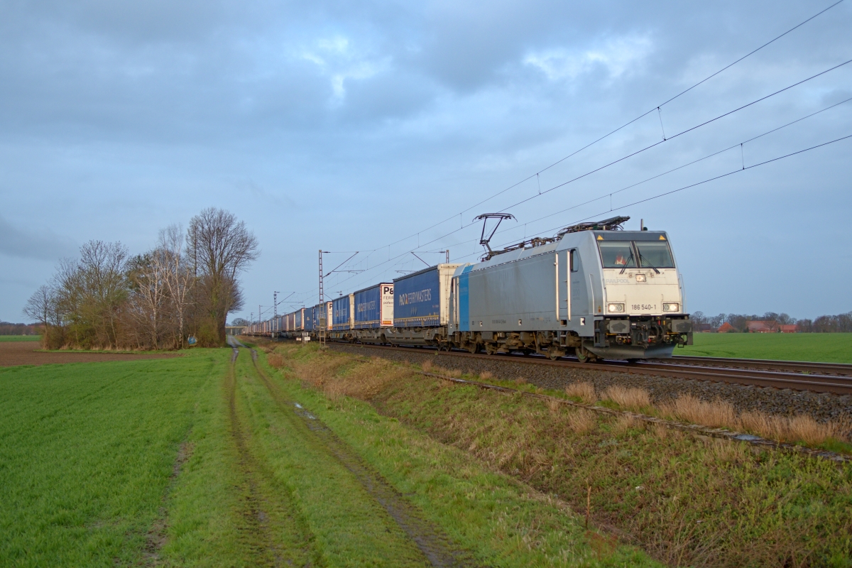 Dto. 186 942-9 im Abendlicht am 18.03.2025 bei Ovelgünne (LOV) mit