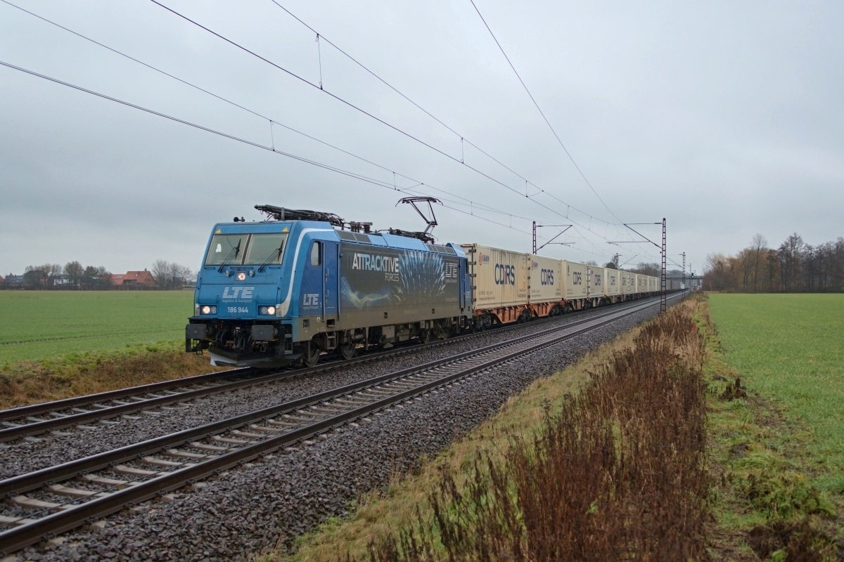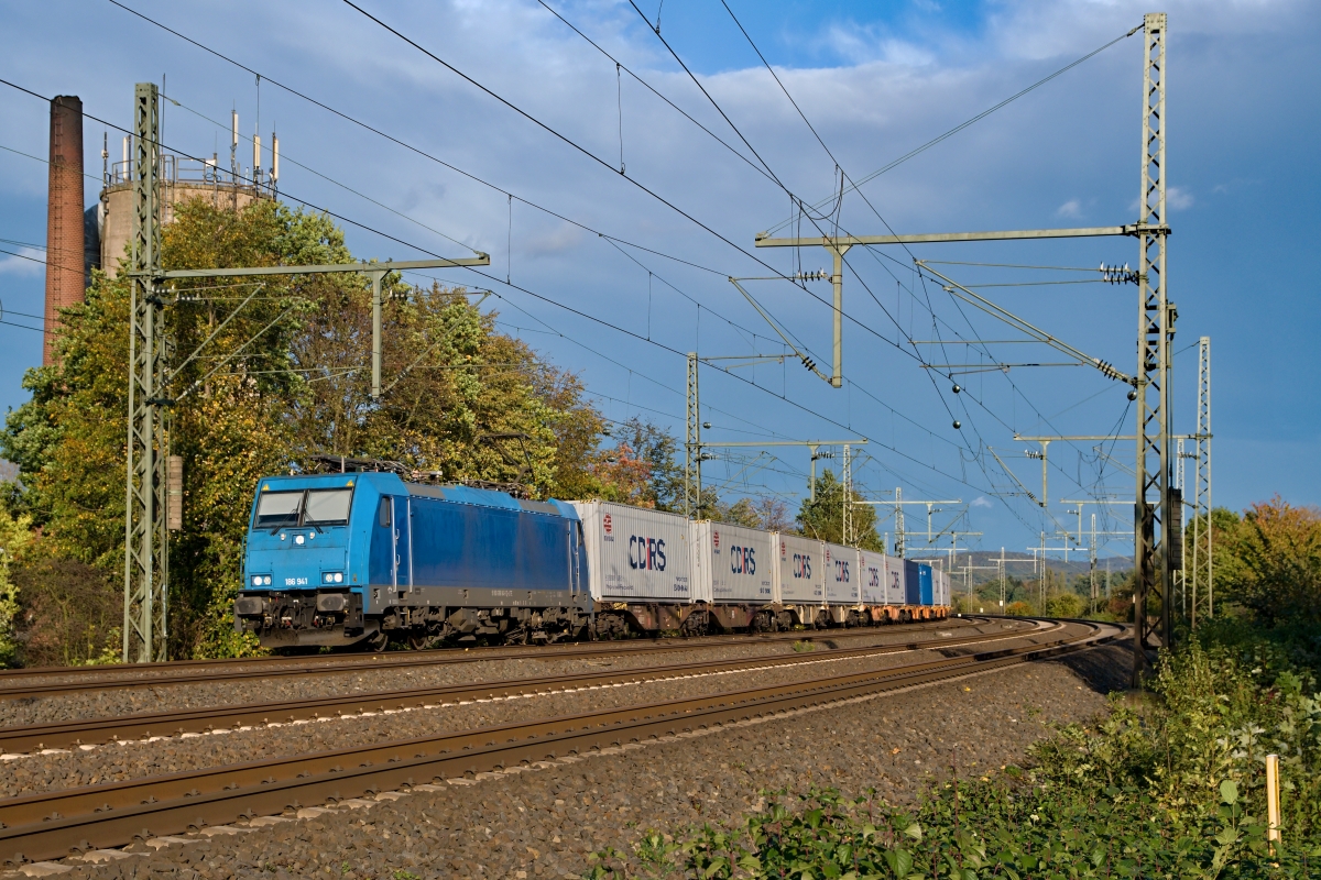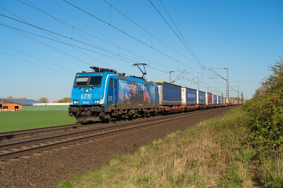 Dto. 186 941-1 dienstags am 22.10.2019. Hier passierte die Lok Ahlten (HALT)