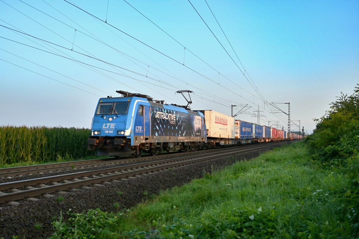 Dto. 186 942-9 am 23.07.2021 früh morgens bei Bückeburg (HBKB) mit