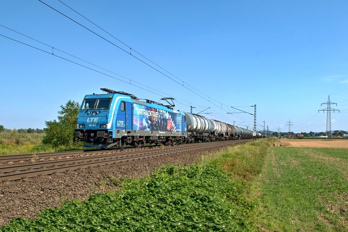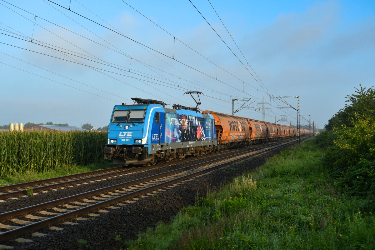 Dto. 186 943-7 am 02.09.2020. Die Lok war hier bei Bückeburg (HBKB)