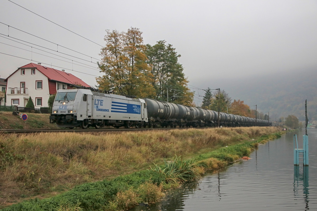 Dto. 286 940-2 am 19.10.2018 bei Schlechtwetter. Hier war die Lok