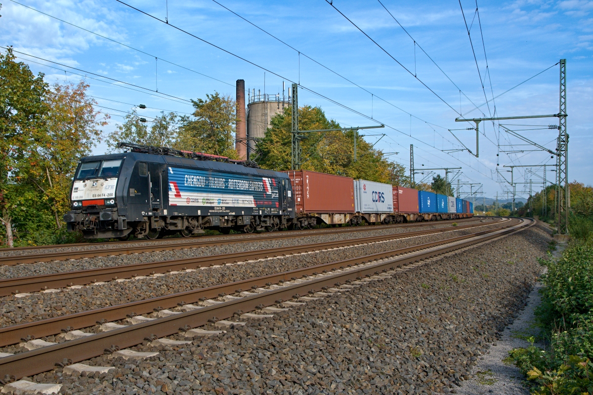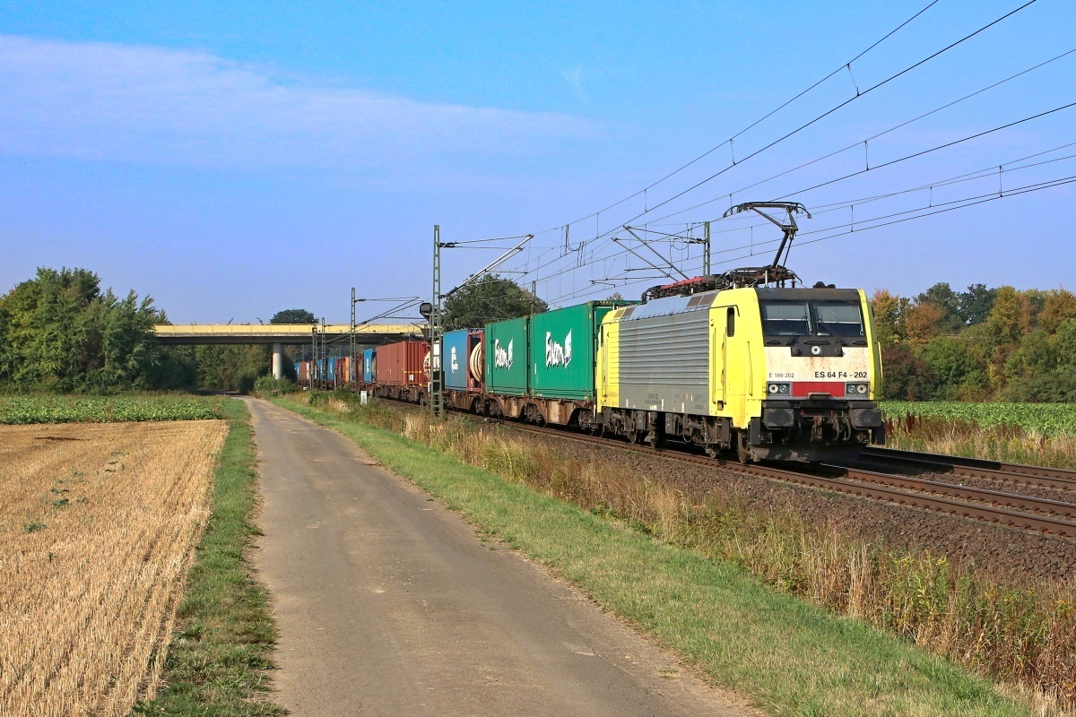 Dto. 189 200-9 am 14.10.2019 bei Bad Oeynhausen (HOY) mit dem CT-Zug 42484