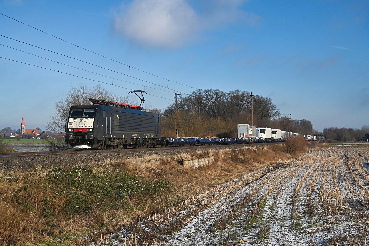 Hier war die Lok am 15.01.2018 mit dem Rotterdam-Poznan Shuttle bei Ovelgünne Rtg. Osten