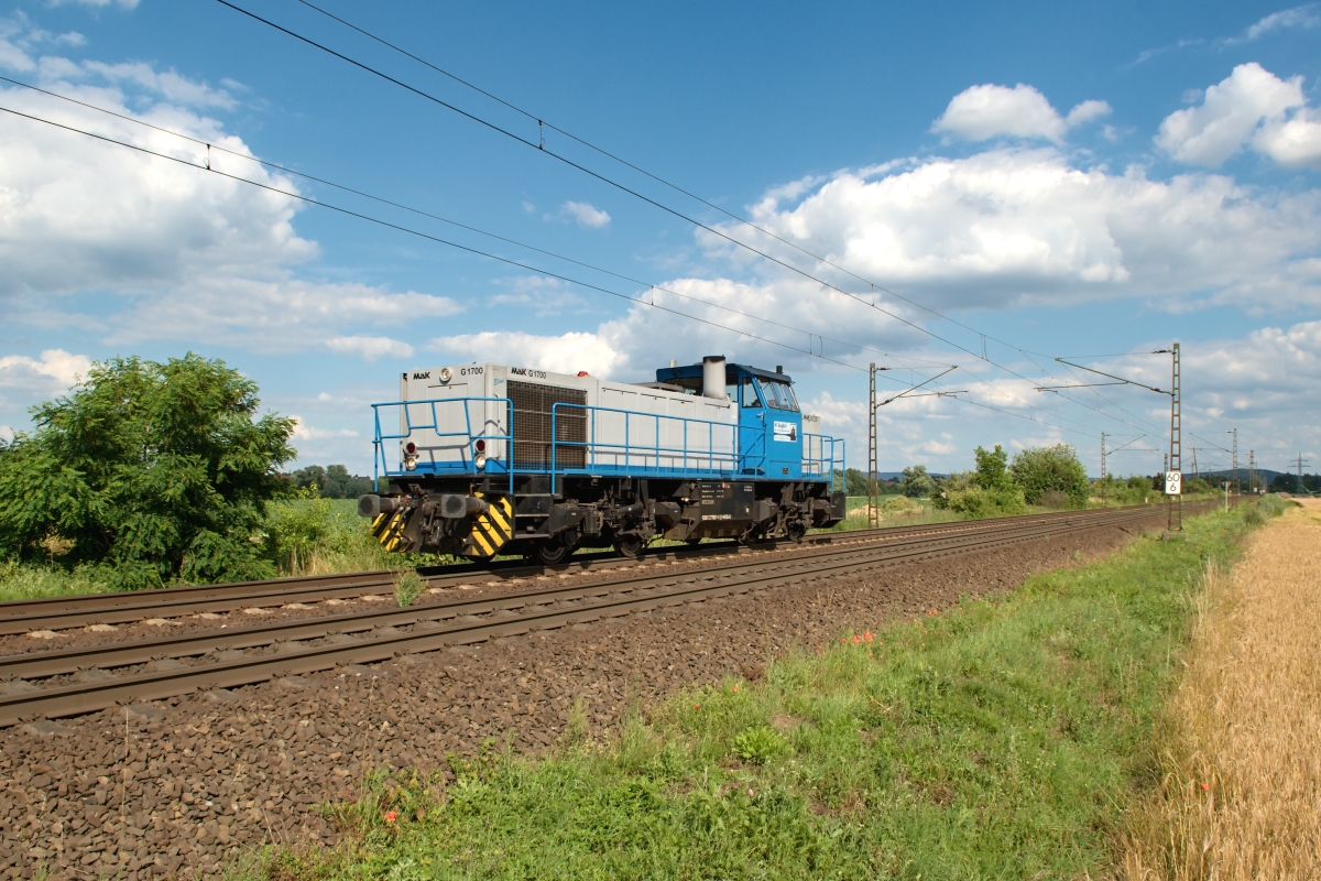 wo sie dann einen Gleisbauzug mit Langschienen abholt...