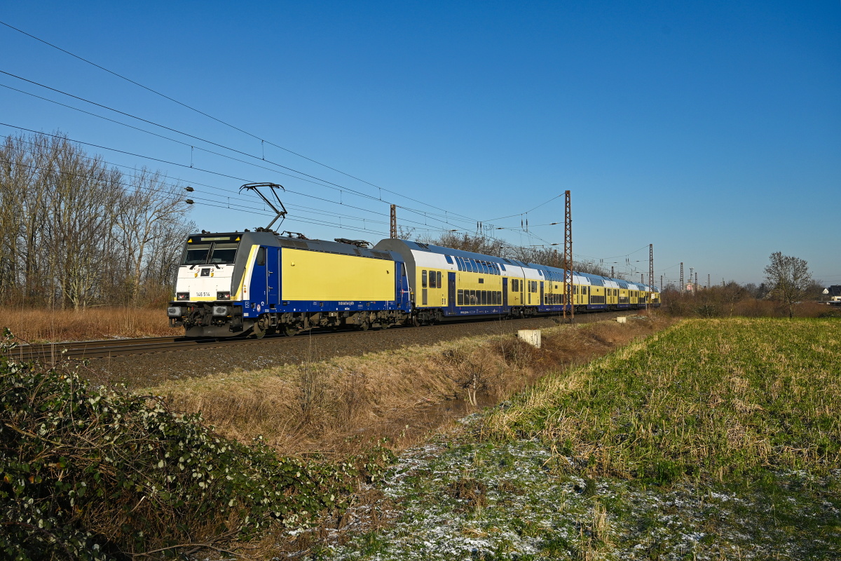Dto. 146 514-5 am 09.01.2024 bei Elze (HELZ) mit dem RE2 nach