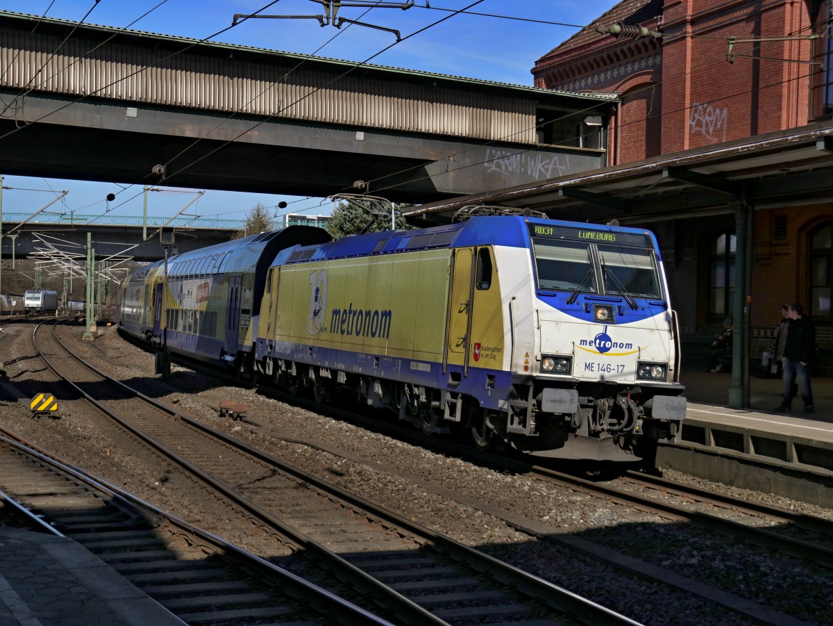 Dto. ME 146-02 am 01.09.2017 mit dem RE4 Rtg. Hamburg Hbf im Harburger Bhf.