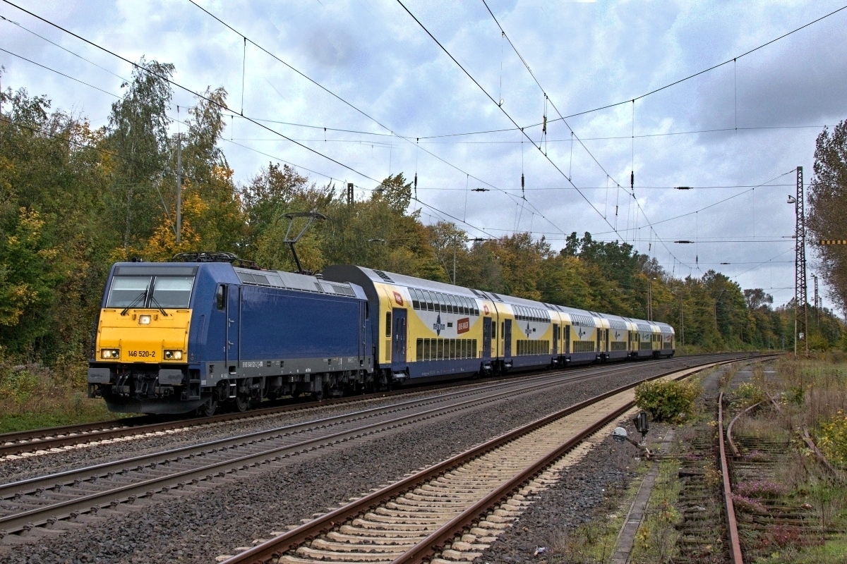Dto. 146 511-1 früh morgens am 09.10.2024 kurz vor Elze (HELZ). Hier