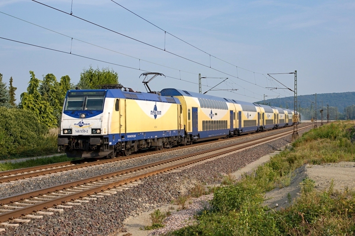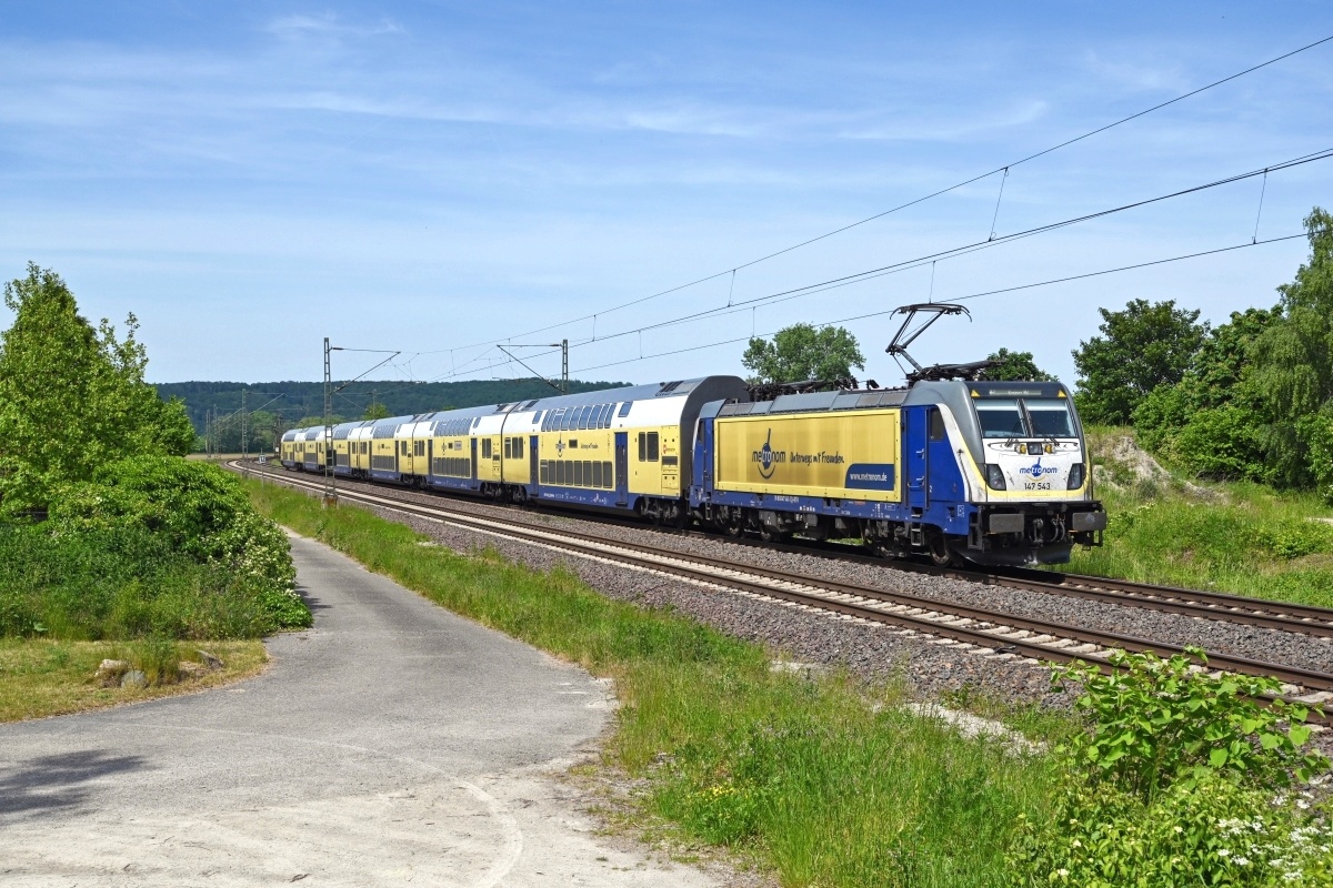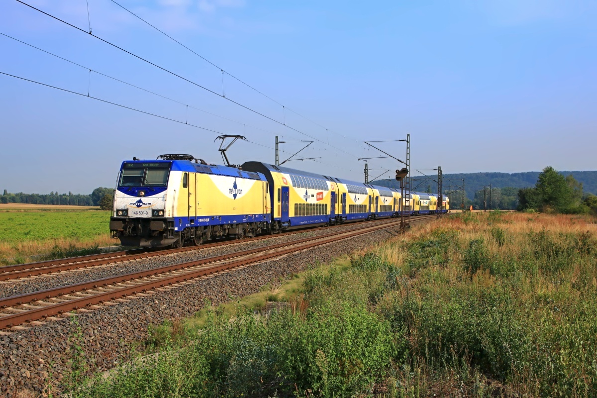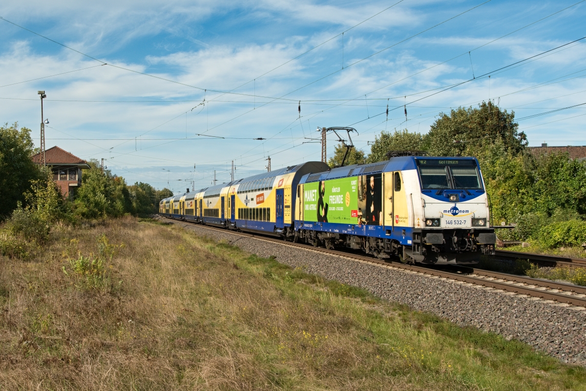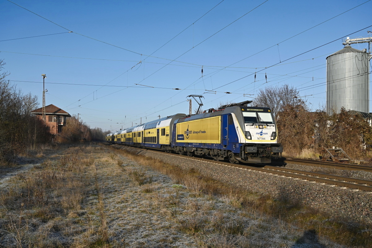 Dto. 147 544-1 am 08.09.2023 bei Elze (HELZ)mit dem Metronom (82345)