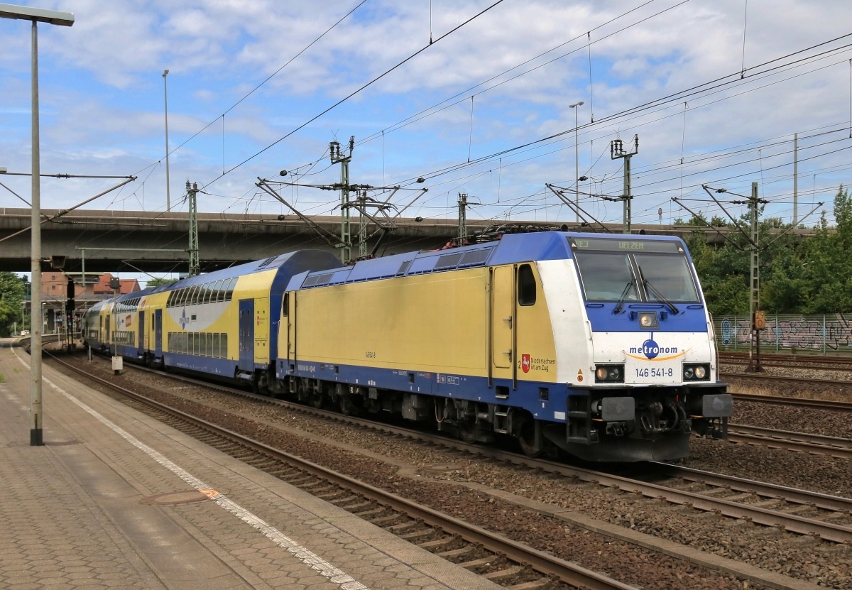146 505-3 fährt nun ohne die 10 Jahre Metronom Werbung. Hier am 29.08.2017