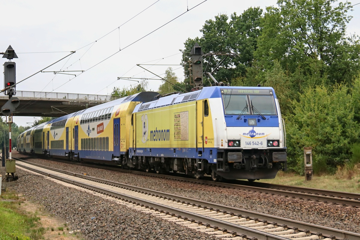 Dto. 146 542-6 am 04.09.2016 bei Bienenbüttel mit dem RE3 nach Hamburg Hbf