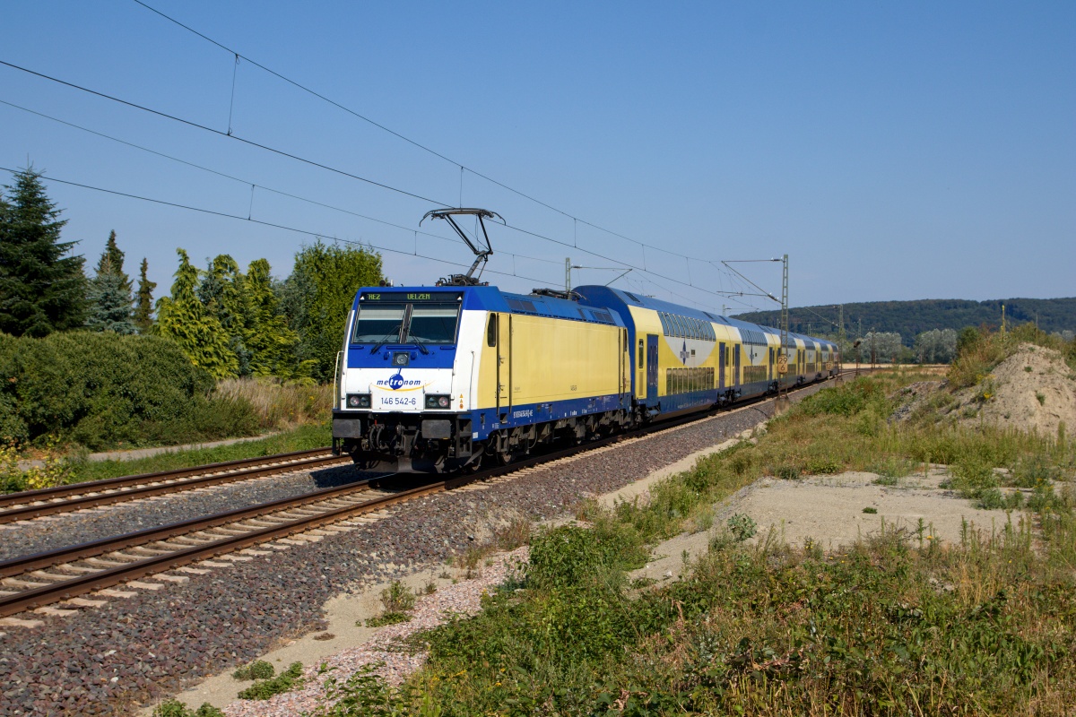 Dto. 146 542-6 am 16.08.2018. Hier passierte die Lok den ehemaligen Bahnhof