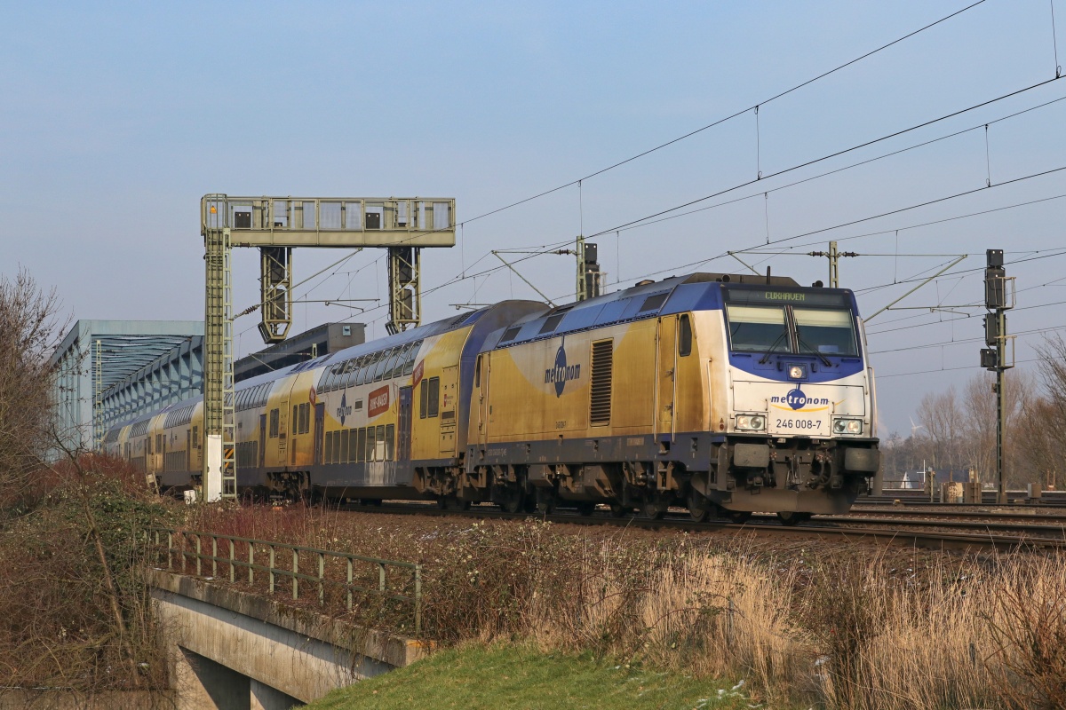 Dto. 246 008-7 am 08.02.2018 bei den Süderelbebrücken mit dem RE5 nach Cuxhaven unterwegs