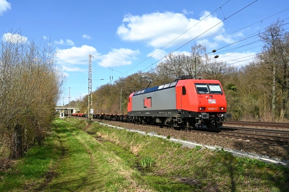 Dto. 145 051-9 am 19.04.2023 im Gümmer Wald (HGUE) mit einem CT-Zug Rtg.