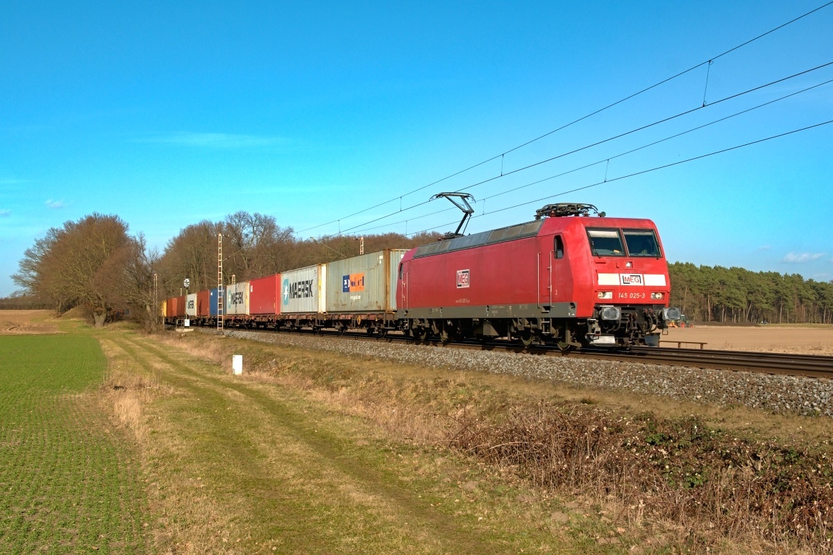 war hier am 25.02.2021 bei Poggenhagen (HPOG) Liethe mit einem Containerzug