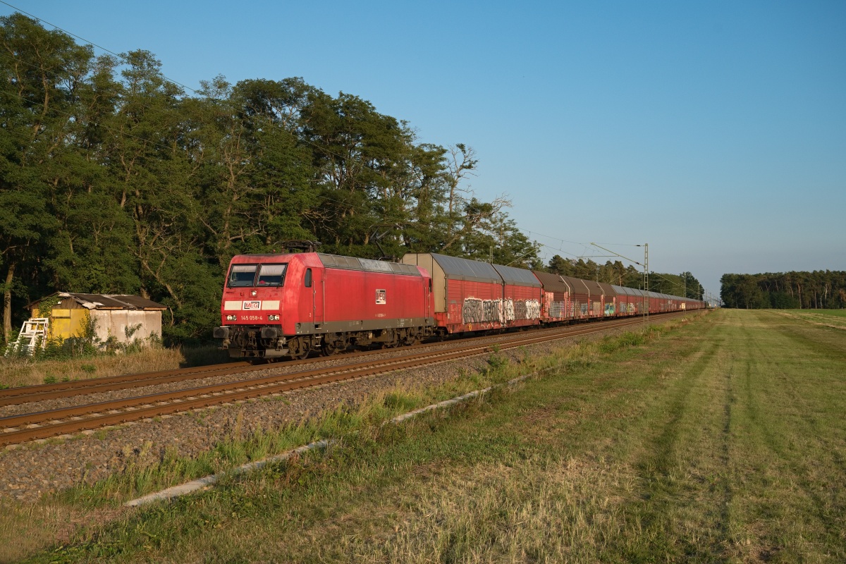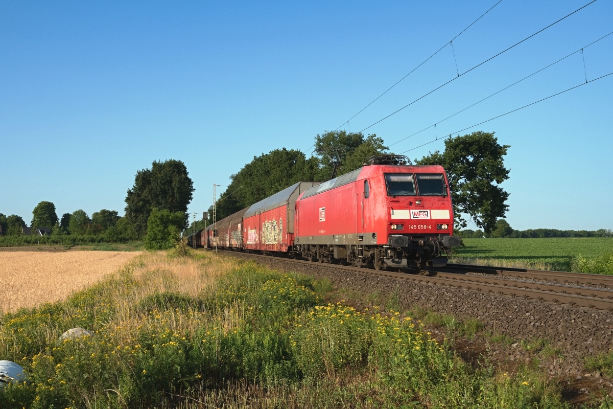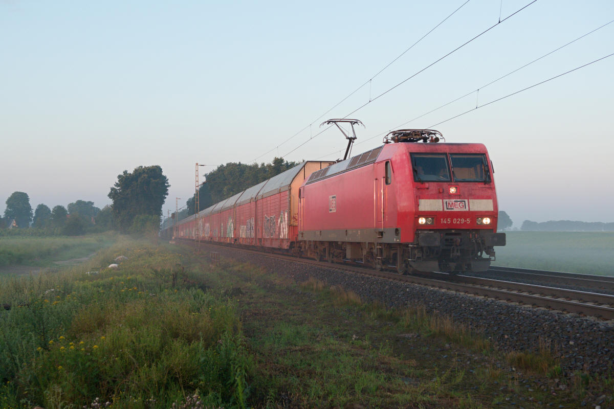 Dto. 145 029-5 am 17.07.2020 im Morgendunst bei Poggenhagen (HPOG) Liethe