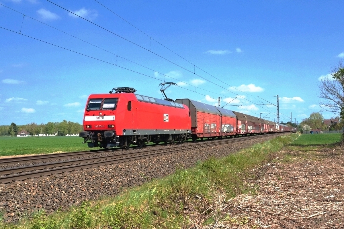 Dto. 145 031-1 am 27.04.2022 bei Bückeburg mit dem DGS 69443 Leipzig-Wahren