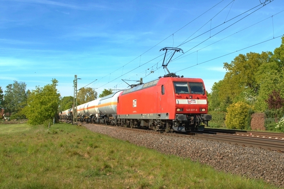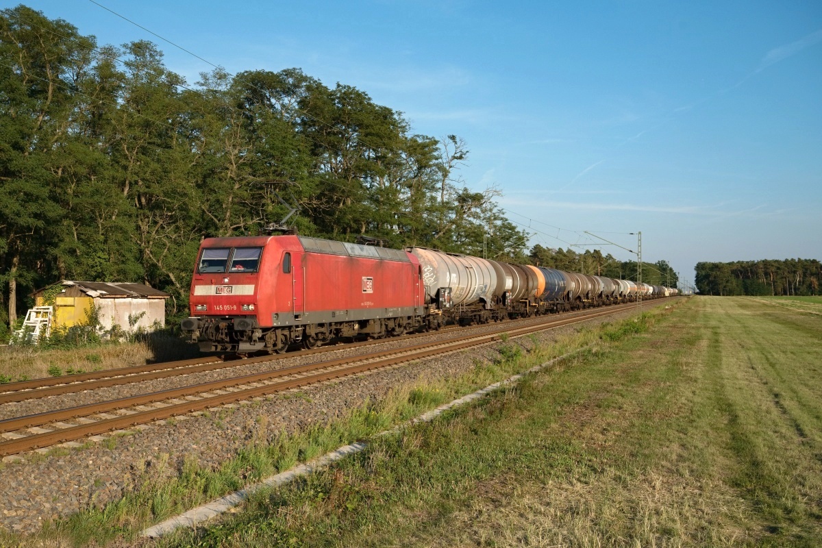 Dto. 145 038-6 am 06.08.2024 bei Schandelah (HSDL) mit Gaskesselwagen Rtg.