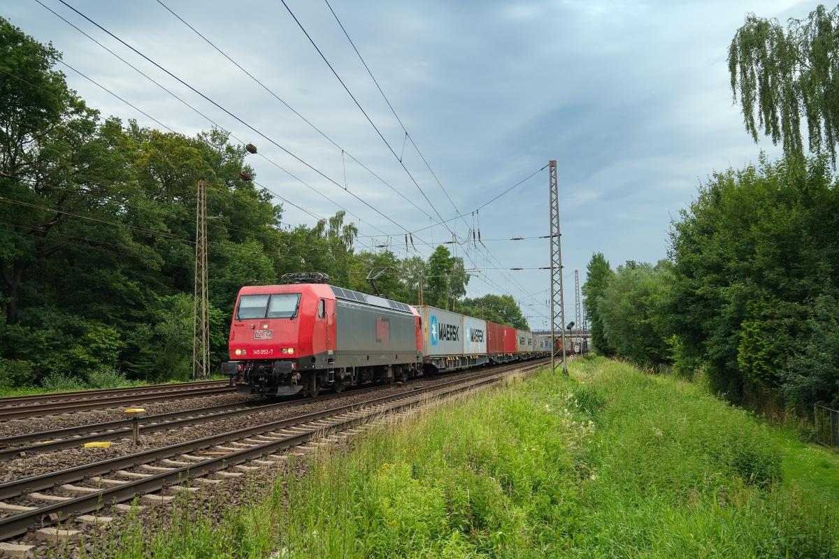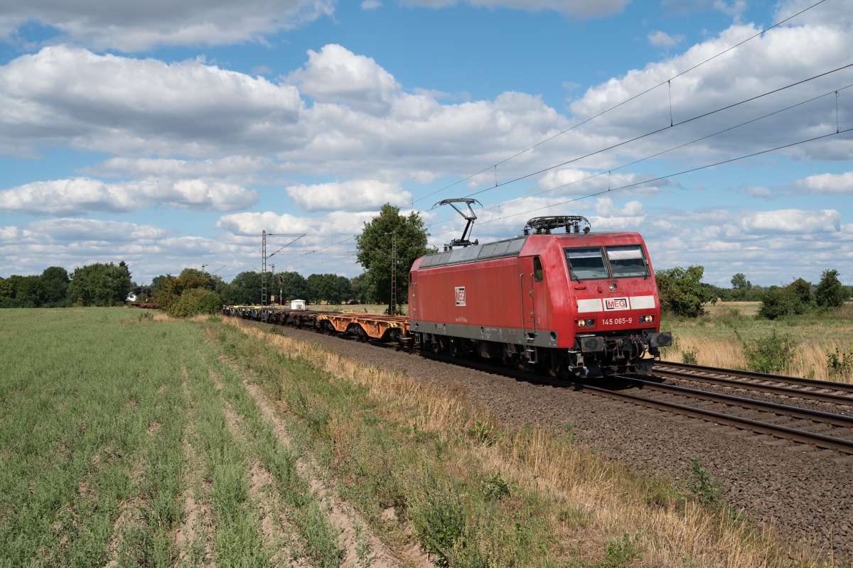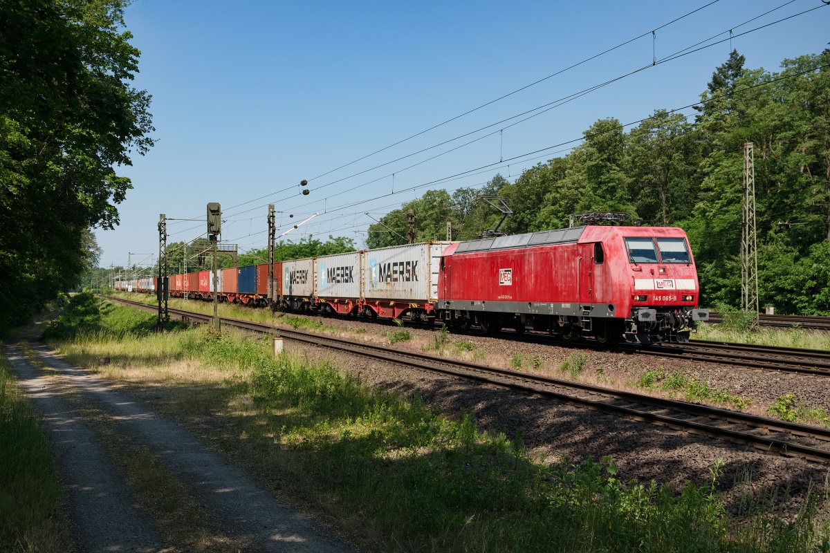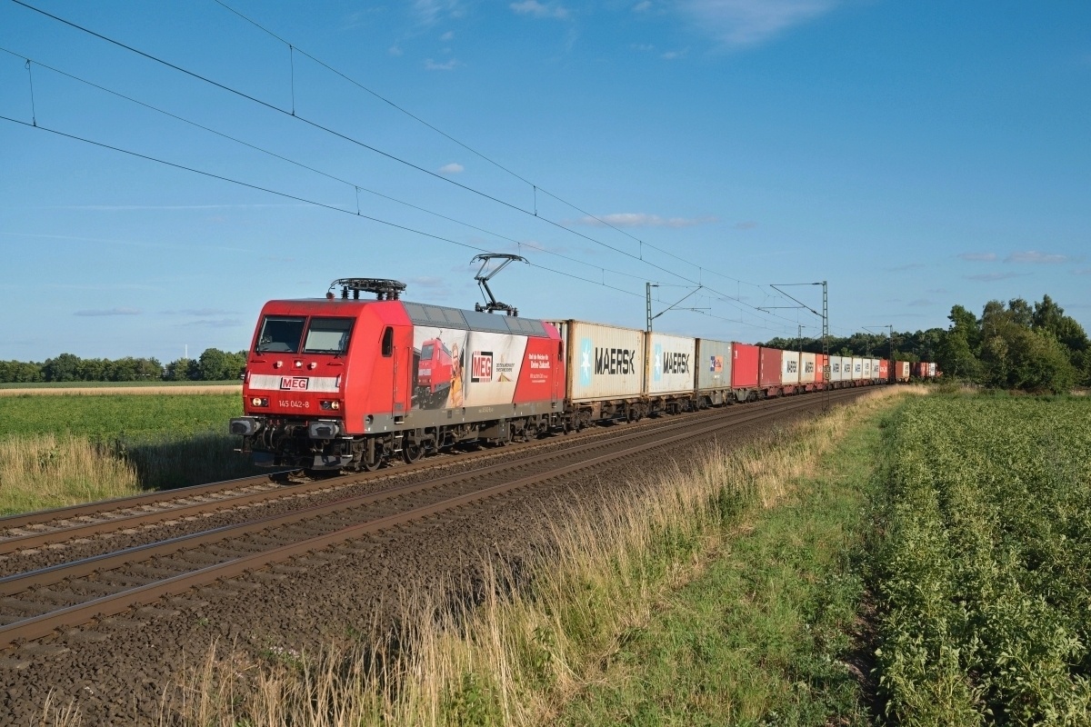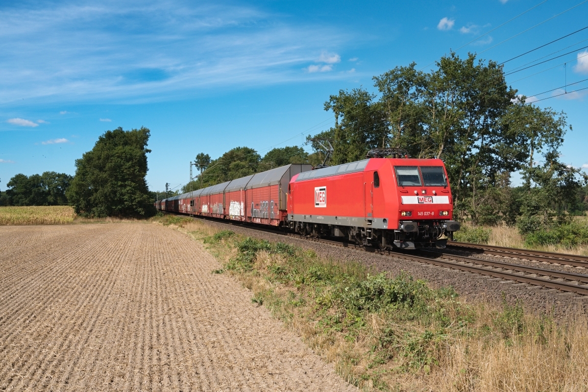 Dto. 145 052-7 im aktuellen MEG Design am 20.06.2024 im Gümmer Wald (HGUE)