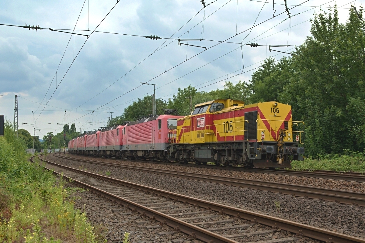 Am Zugende lief MEG 203 002-1 für die Verschiebearbeiten nach/bei Bender